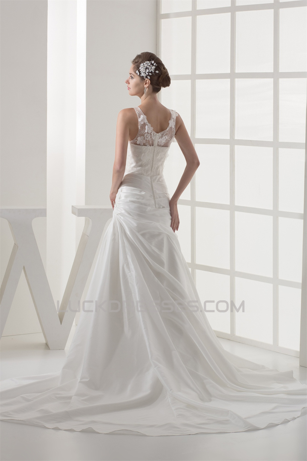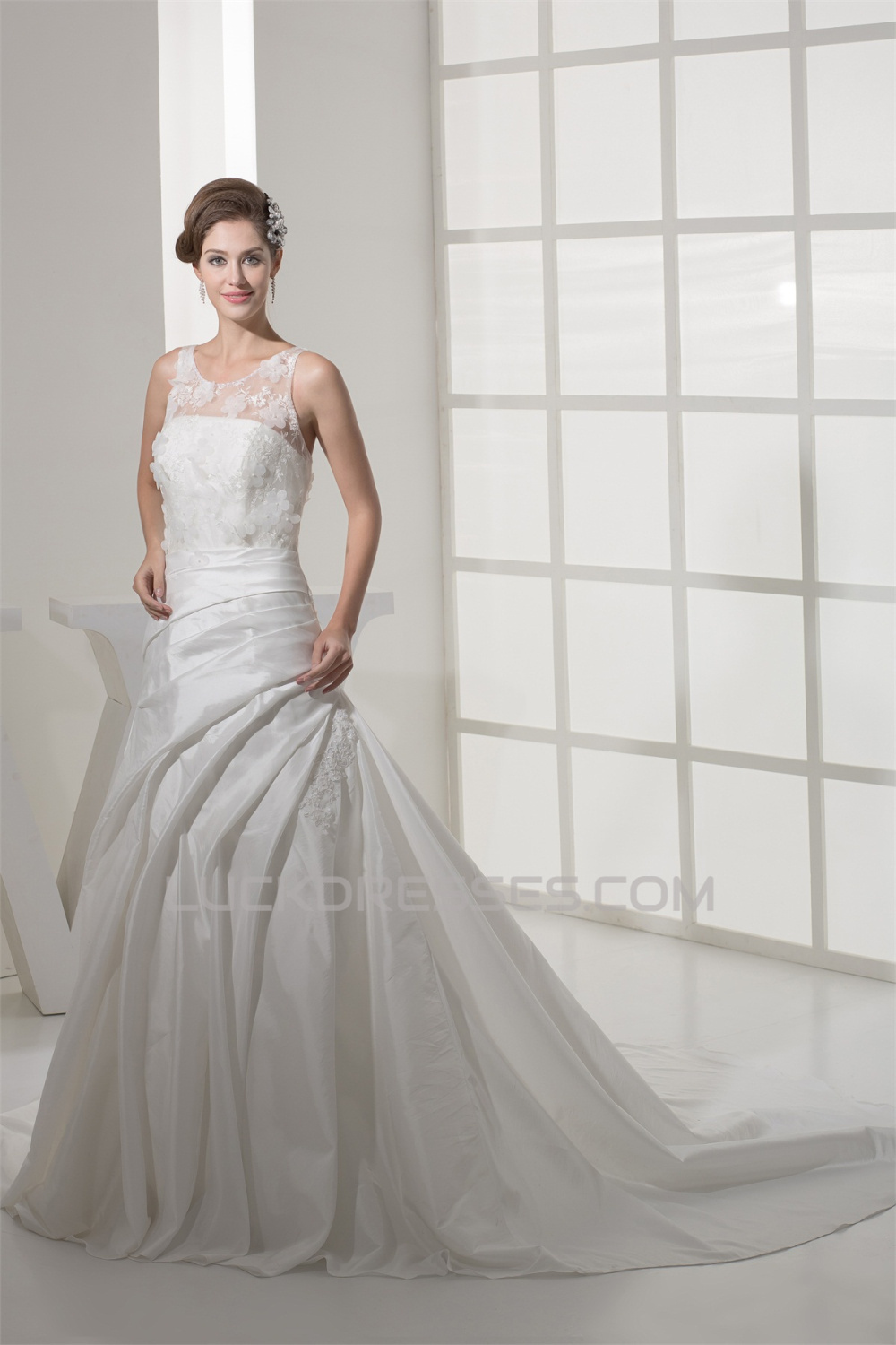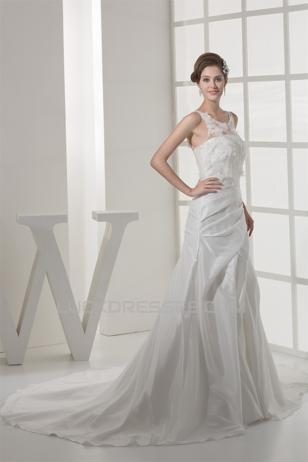 A-Line Sleeveless Scoop Lace Taffeta Best Wedding Dresses 2030502