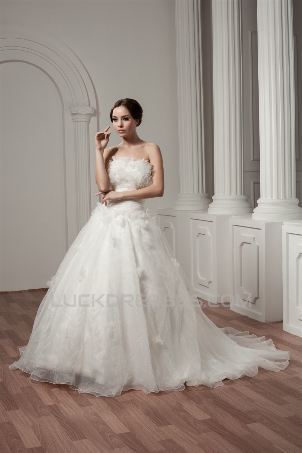 -50% A-Line Sleeveless Strapless Court Train Wedding Dresses 2031035