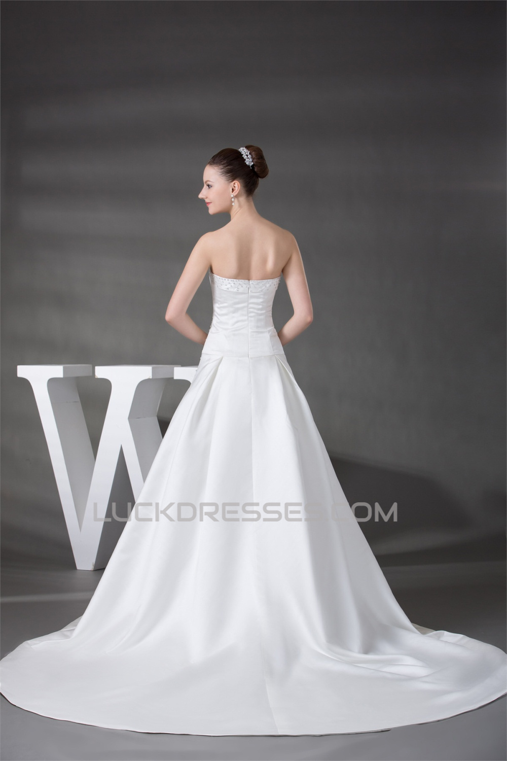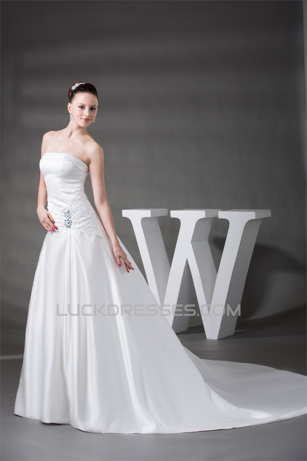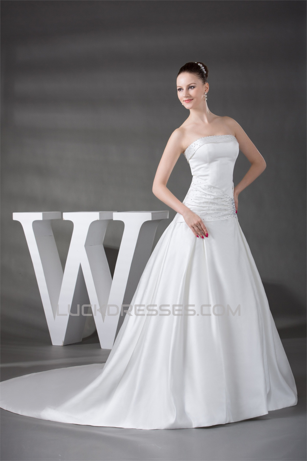 -50% A-Line Sleeveless Strapless Satin Beaded Wedding Dresses 2030178