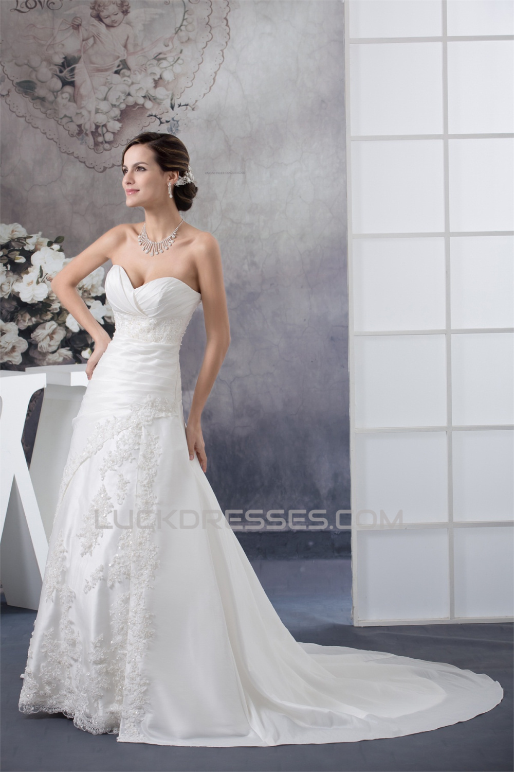 A-Line Sleeveless Sweetheart Lace Taffeta Wedding Dresses 2030188