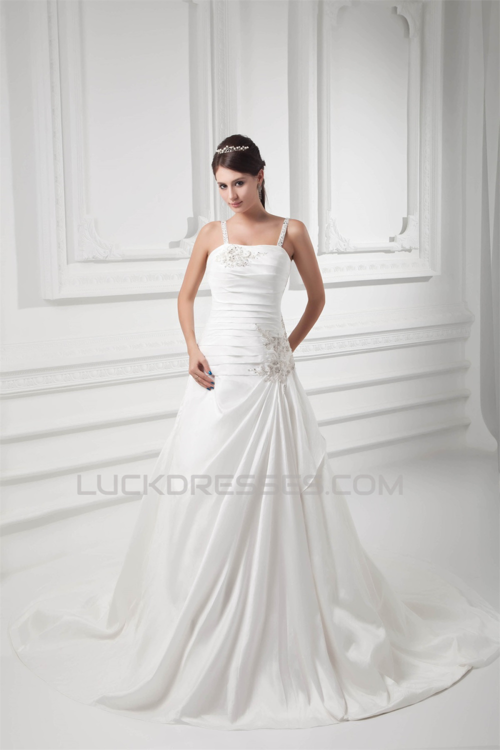 A-Line Sleeveless Taffeta Spaghetti Straps Beaded Wedding Dresses 2031088