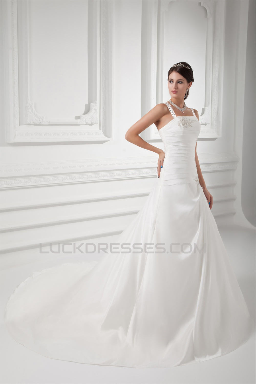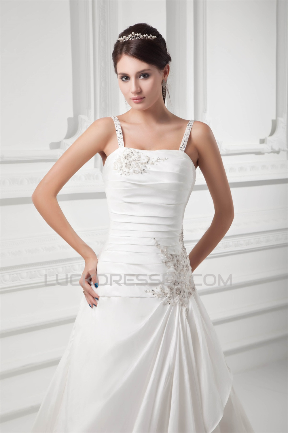 -50% A-Line Sleeveless Taffeta Spaghetti Straps Beaded Wedding Dresses 2031088