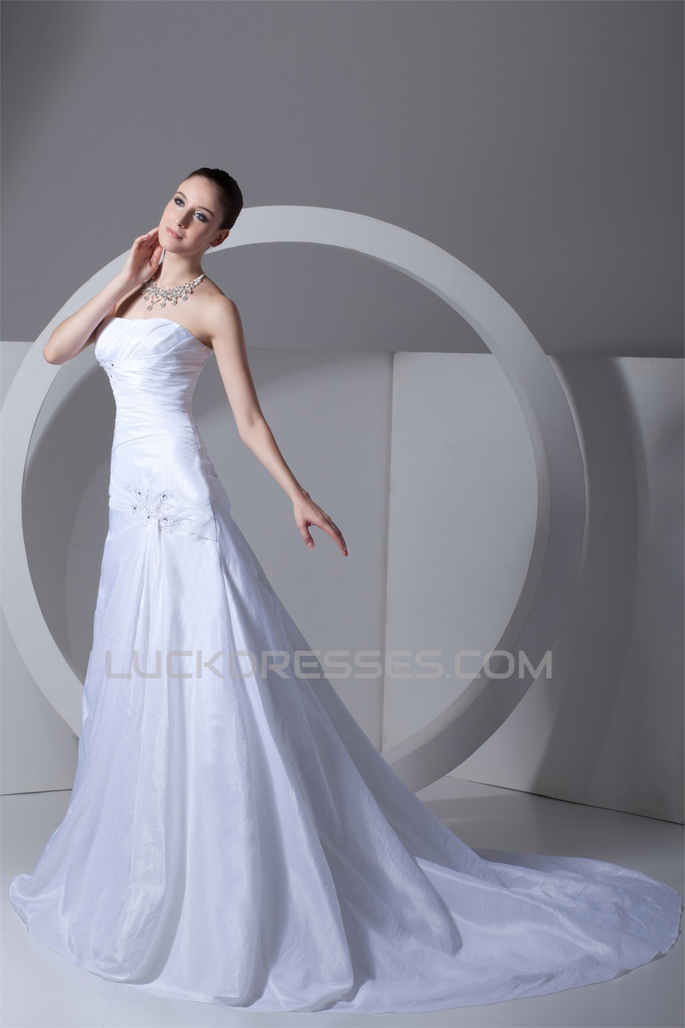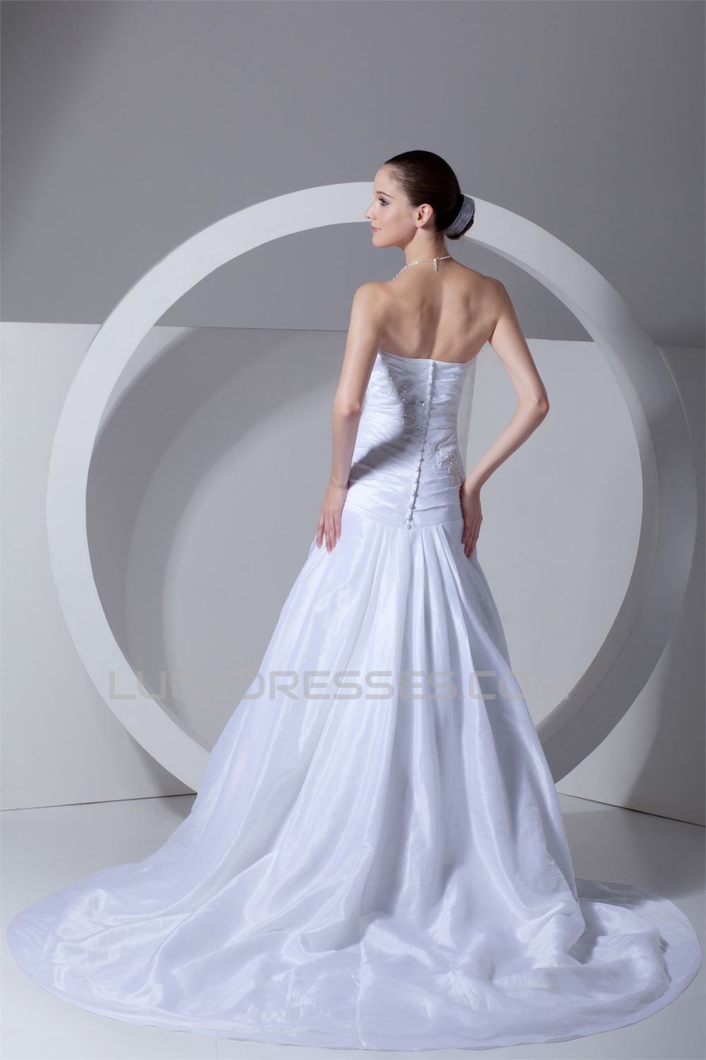 A-Line Sleeveless Taffeta Strapless Beaded Lace Wedding Dresses 2031089