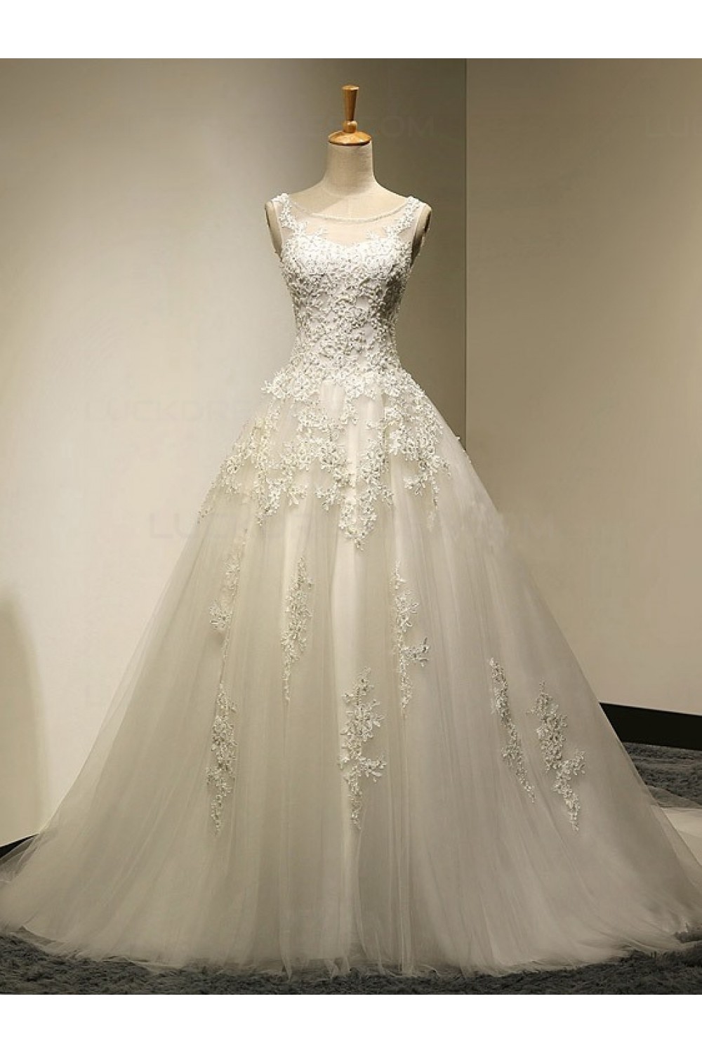 A-Line Sleeveless Tulle Lace Wedding Dresses Bridal Gowns 3030177