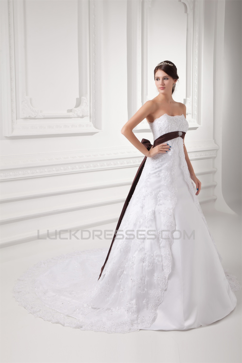 -50% A-Line Soft Sweetheart Satin Lace Wedding Dresses 2031346