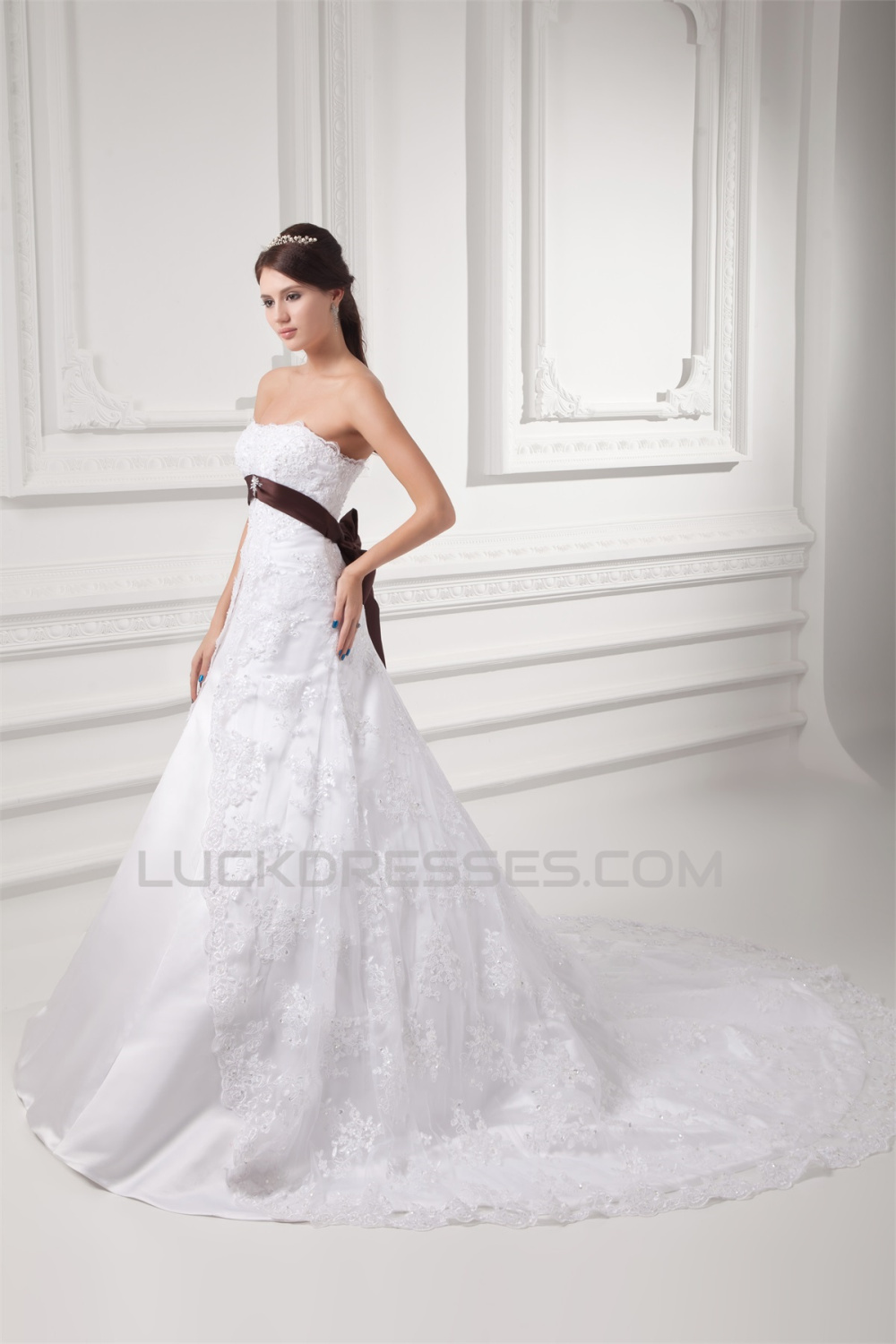 A-Line Soft Sweetheart Satin Lace Wedding Dresses 2031346