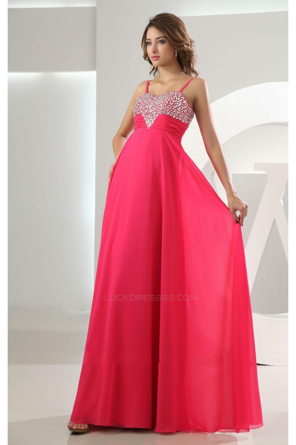 -60% A-Line Spaghetti Strap Beaded Long Chiffon Prom Evening Formal Dresses ED010859