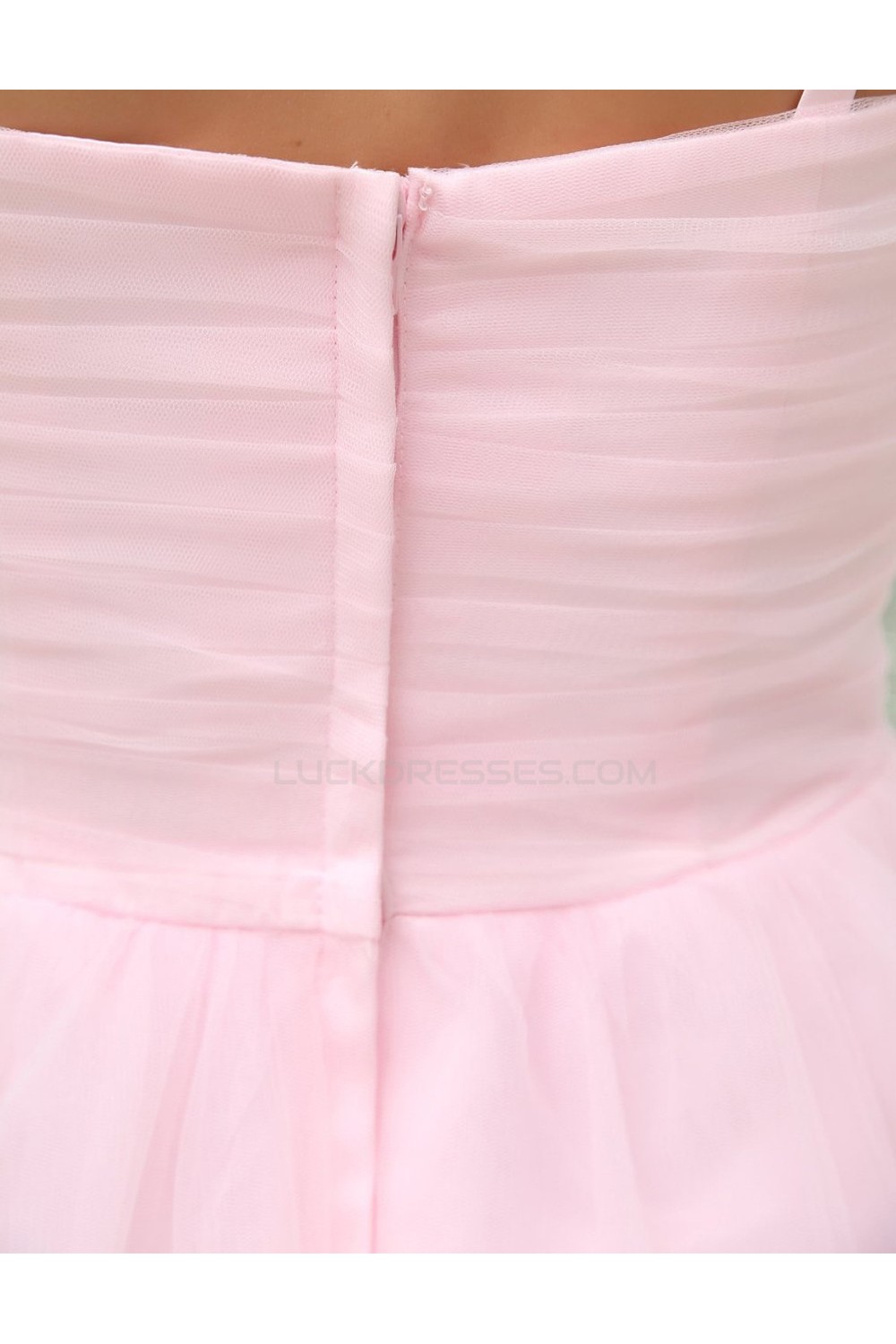 A-Line Spaghetti Strap Beaded Short Pink Prom Evening Formal Party Dresses ED010472