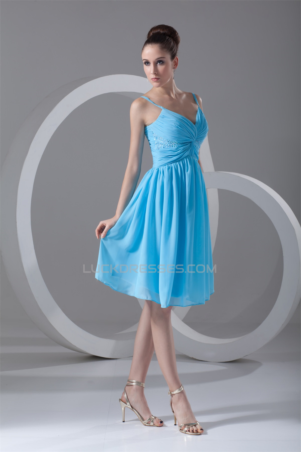 A-Line Spaghetti Straps Beaded Short Blue Chiffon Bridesmaid Dresses 02010535