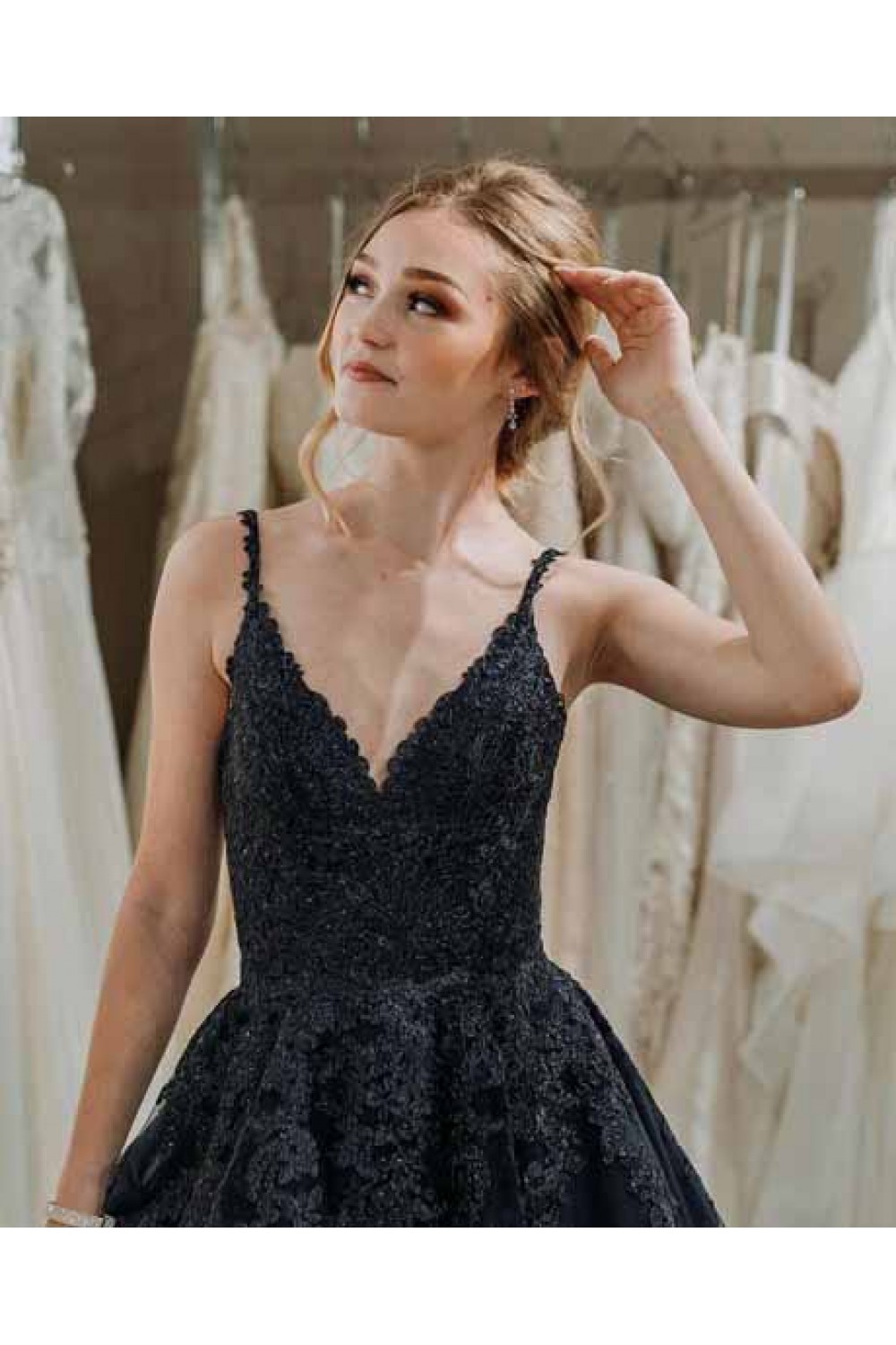 A-Line Spaghetti Straps Long Black Prom Dresses Formal Evening Gowns 601928