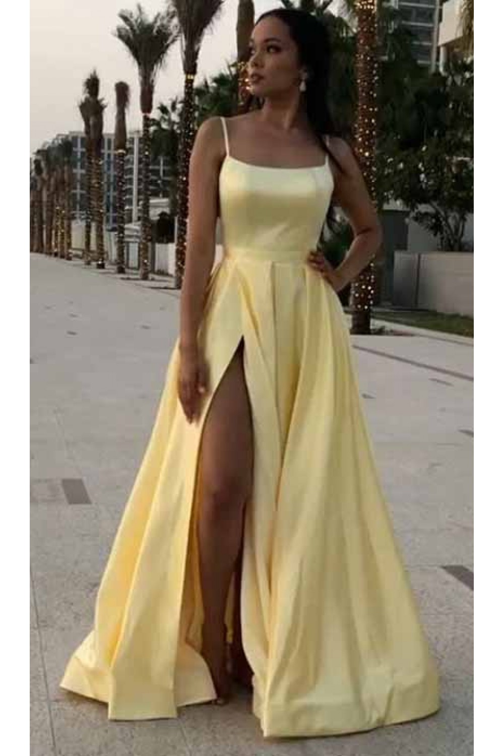 A-Line Spaghetti Straps Long Prom Dresses Formal Evening Gowns 601830
