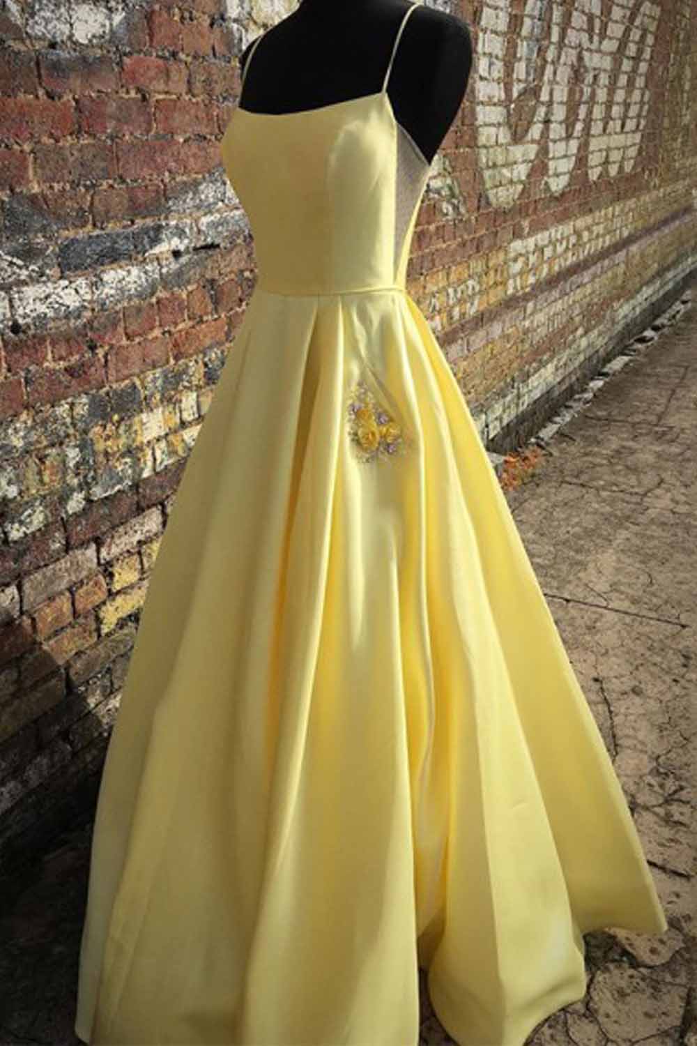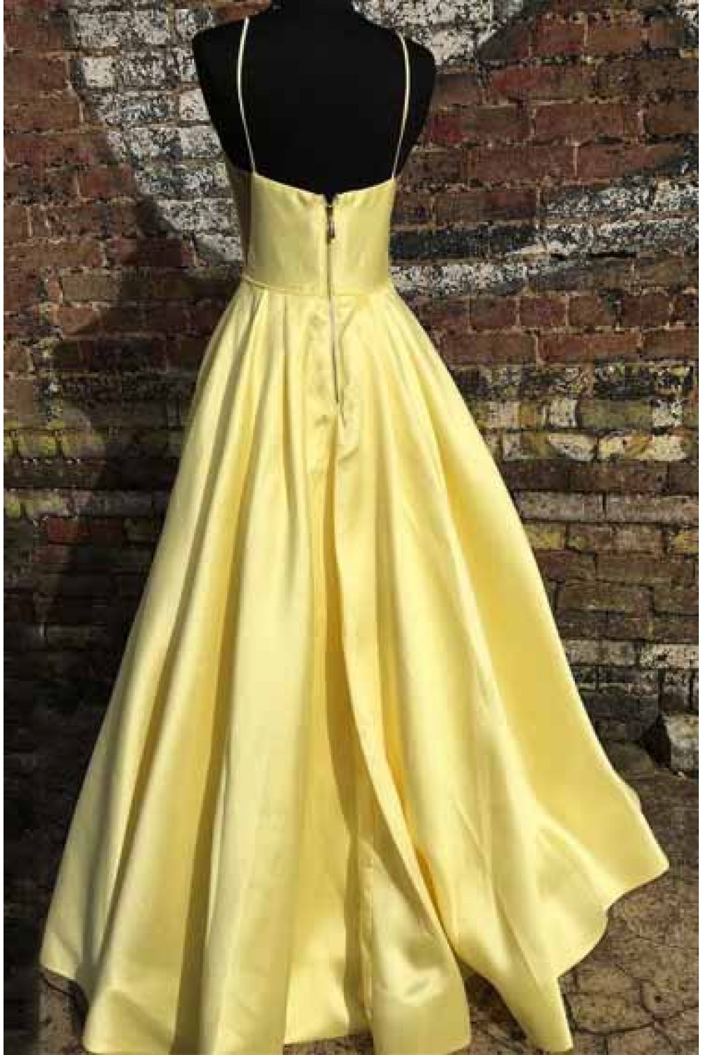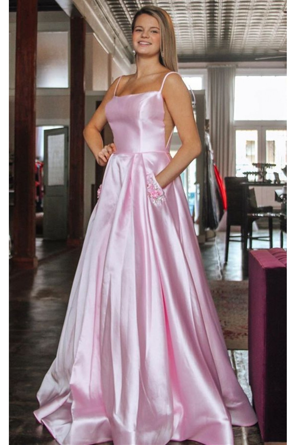 A-Line Spaghetti Straps Satin Long Prom Dresses Formal Evening Gowns 601927