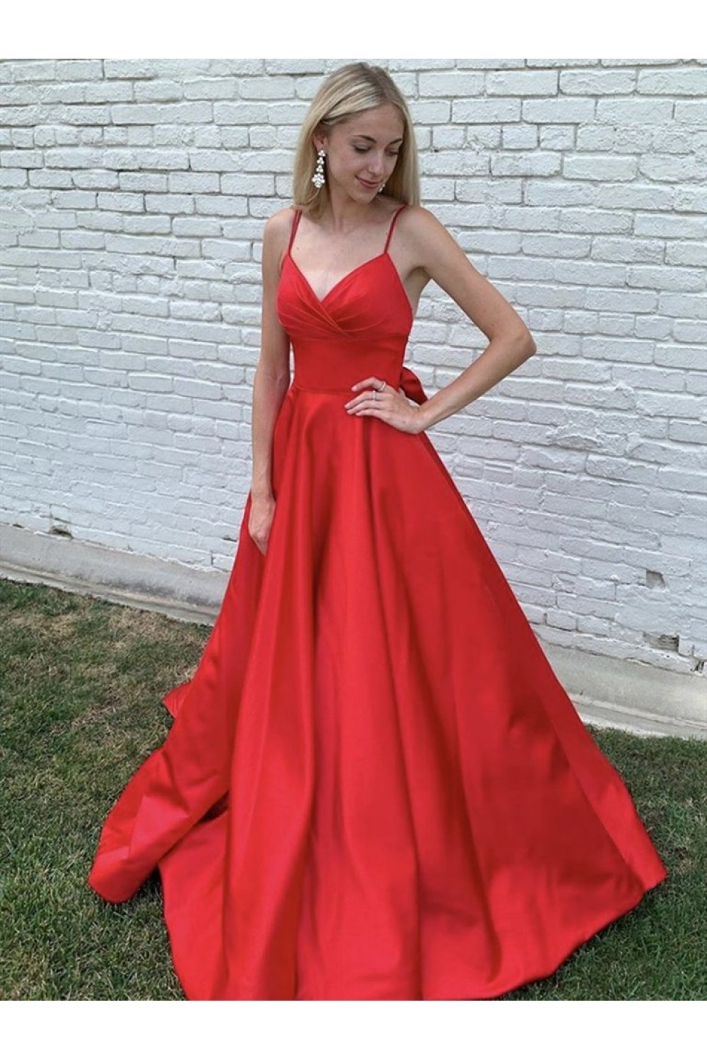 A-Line Spaghetti Straps V-Neck Long Prom Dresses Formal Evening Gowns 601829