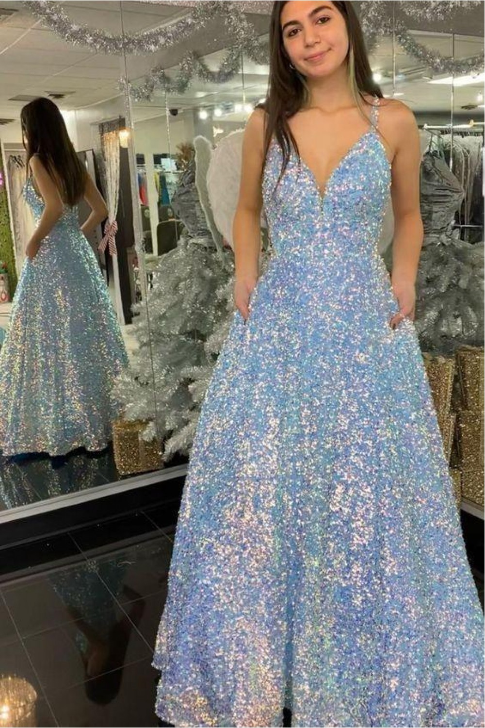 A-Line Sparkle Sequin Prom Dress Formal Evening Gowns 901480