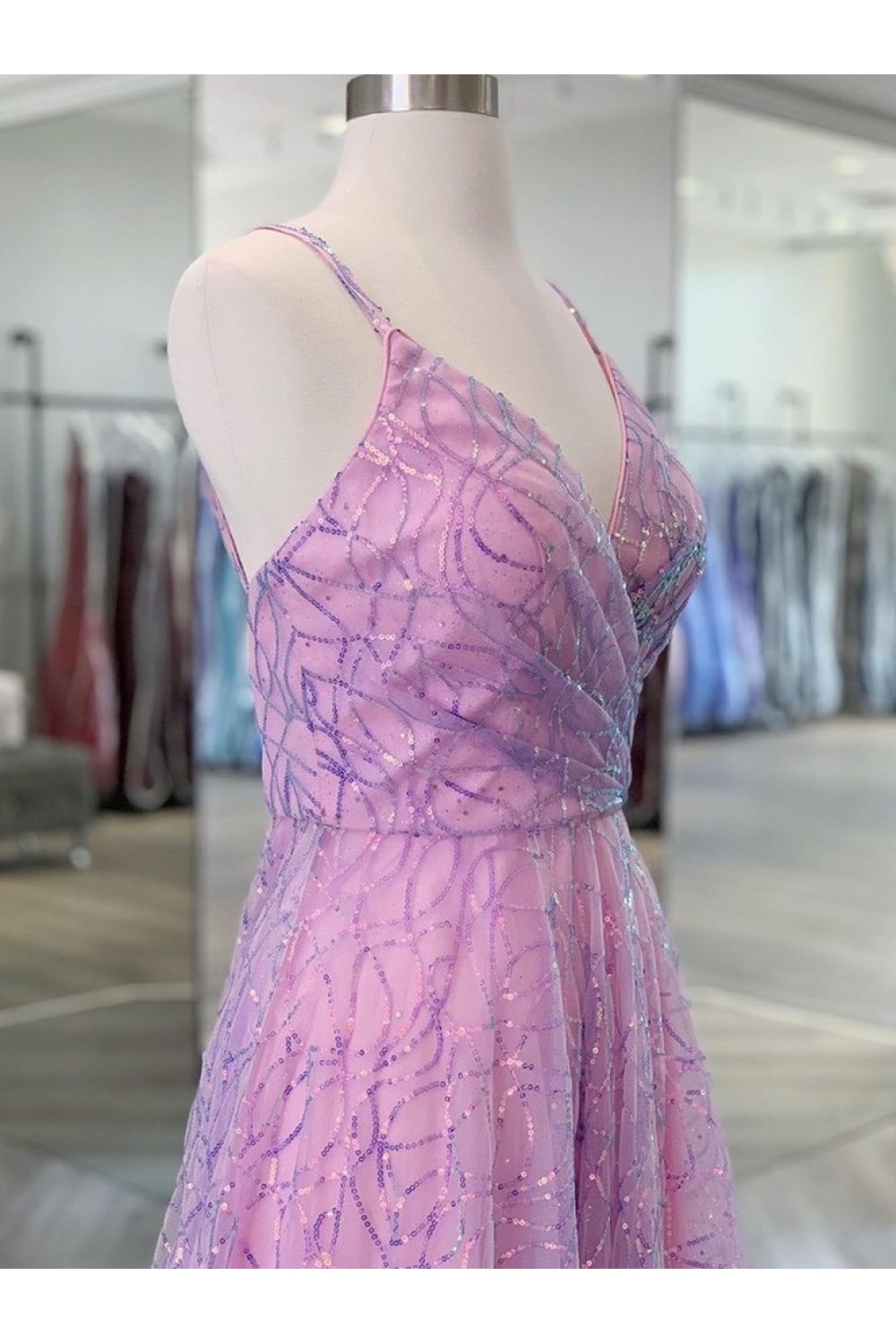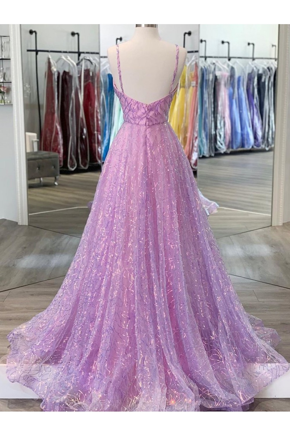 A-Line Sparkly Tulle Long Prom Dresses Formal Evening Gowns 901030