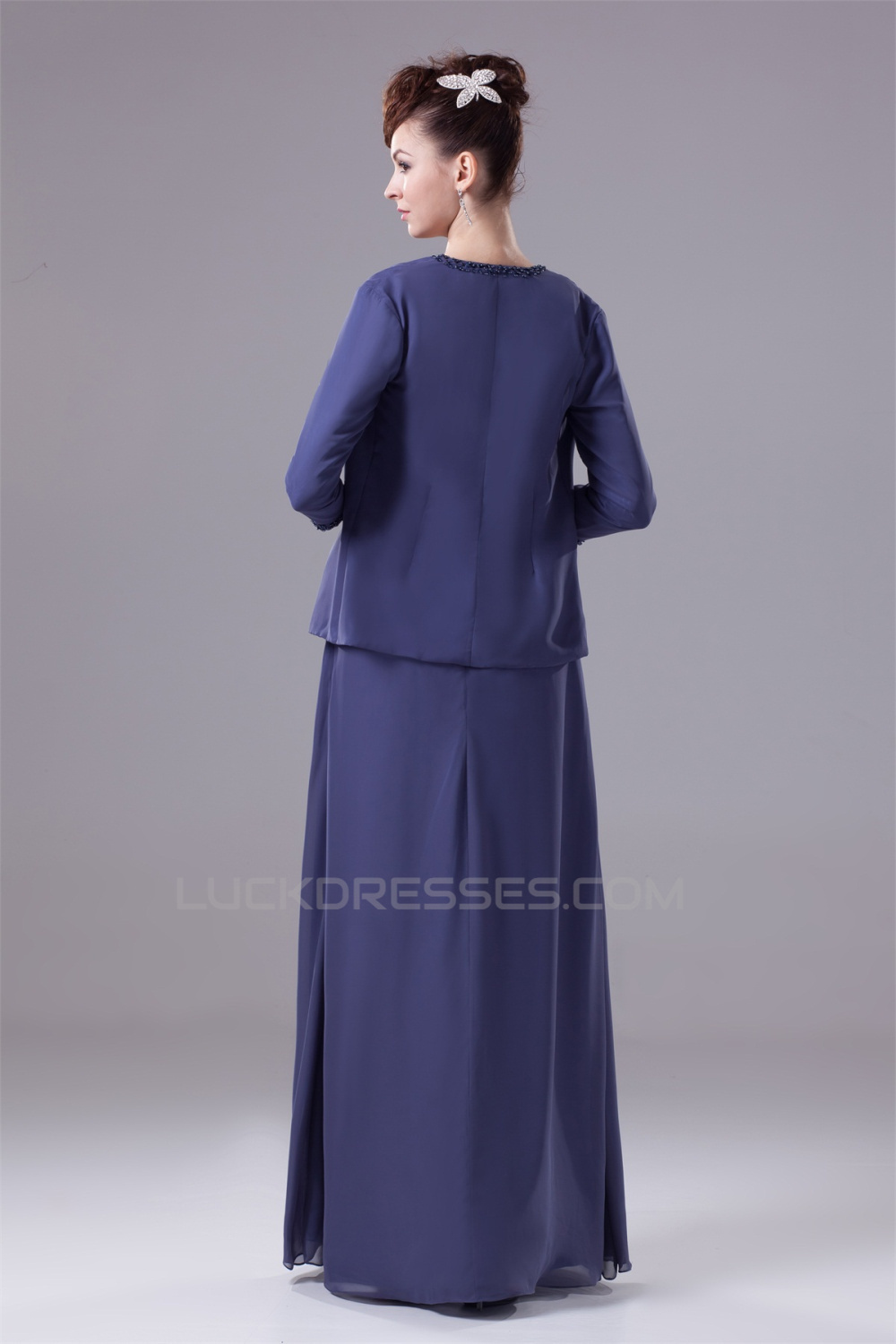 A-Line Square Floor-Length 3/4 Sleeve Beading Mother of the Bride Dresses with A Jacket 2040004