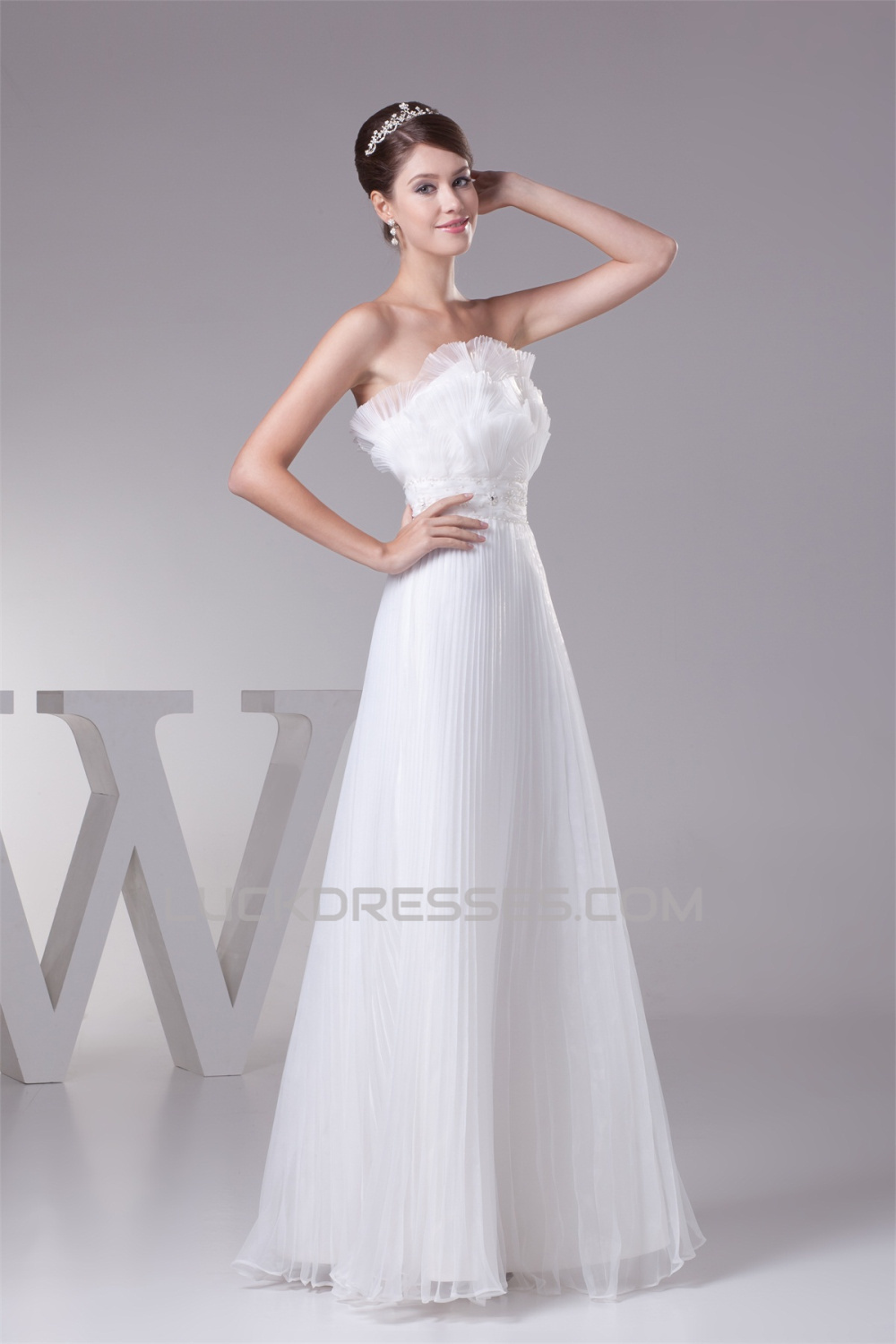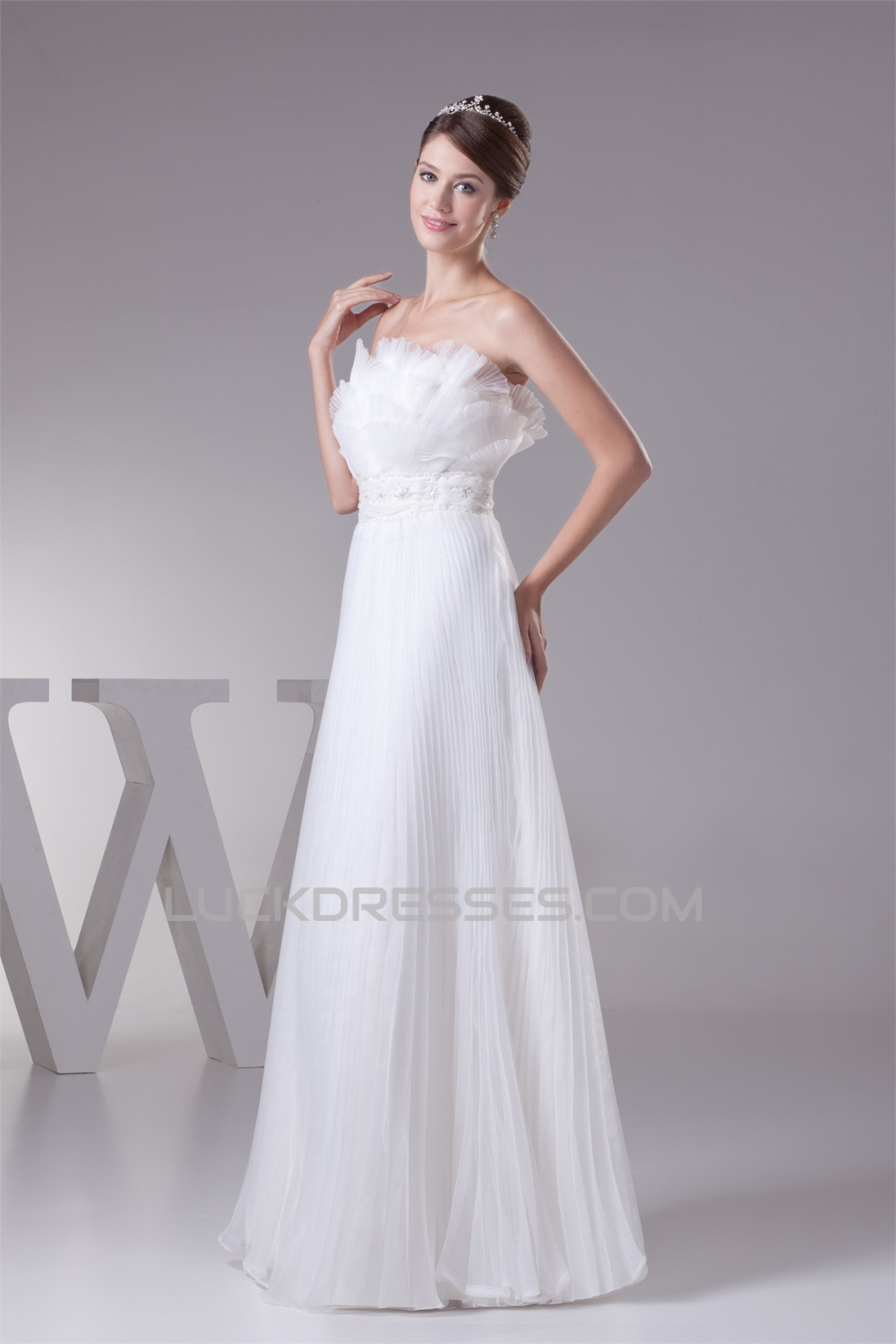 -50% A-Line Strapless Beaded Floor-Length Pleated Wedding Dresses 2030076