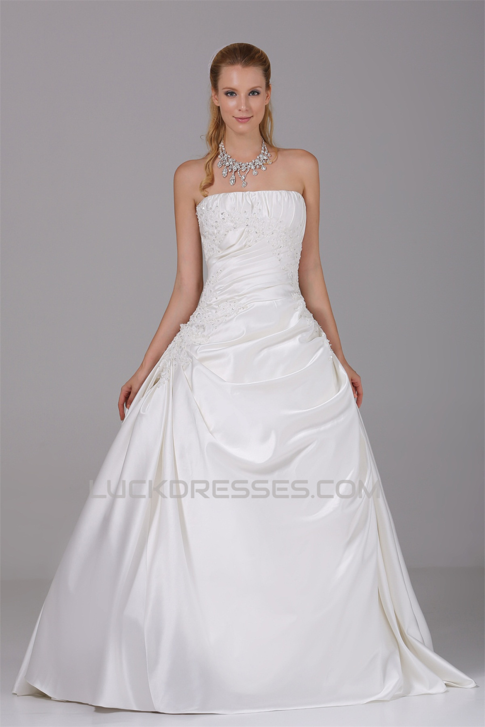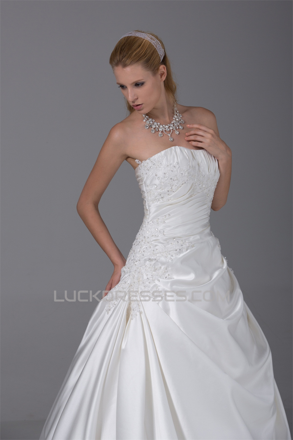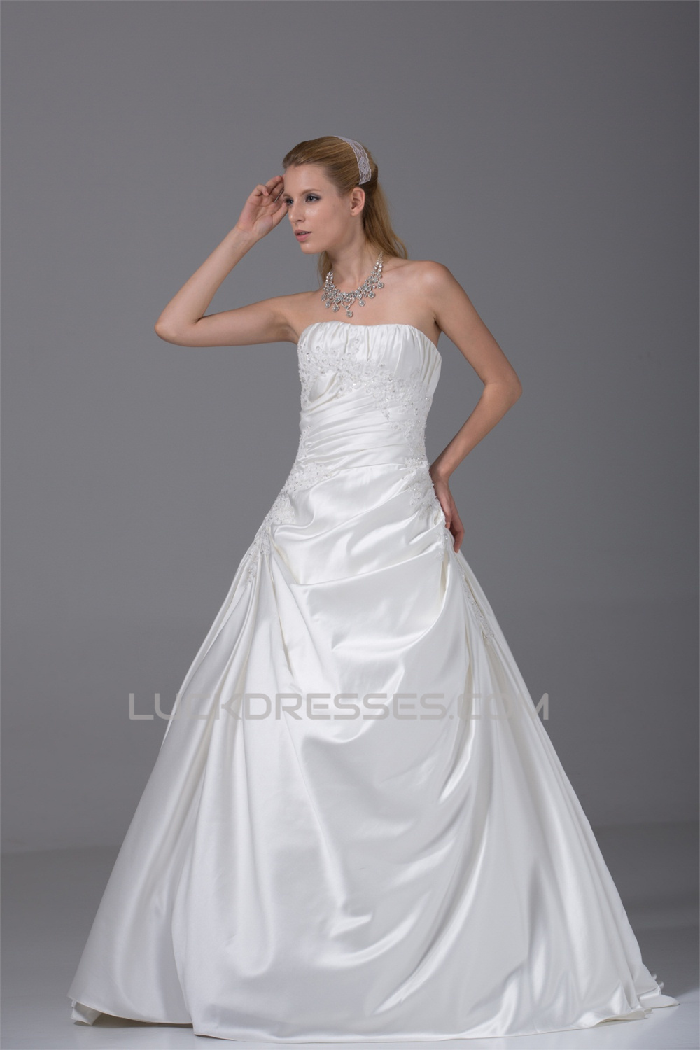-50% A-Line Strapless Beaded Lace Satin Wedding Dresses 2030118