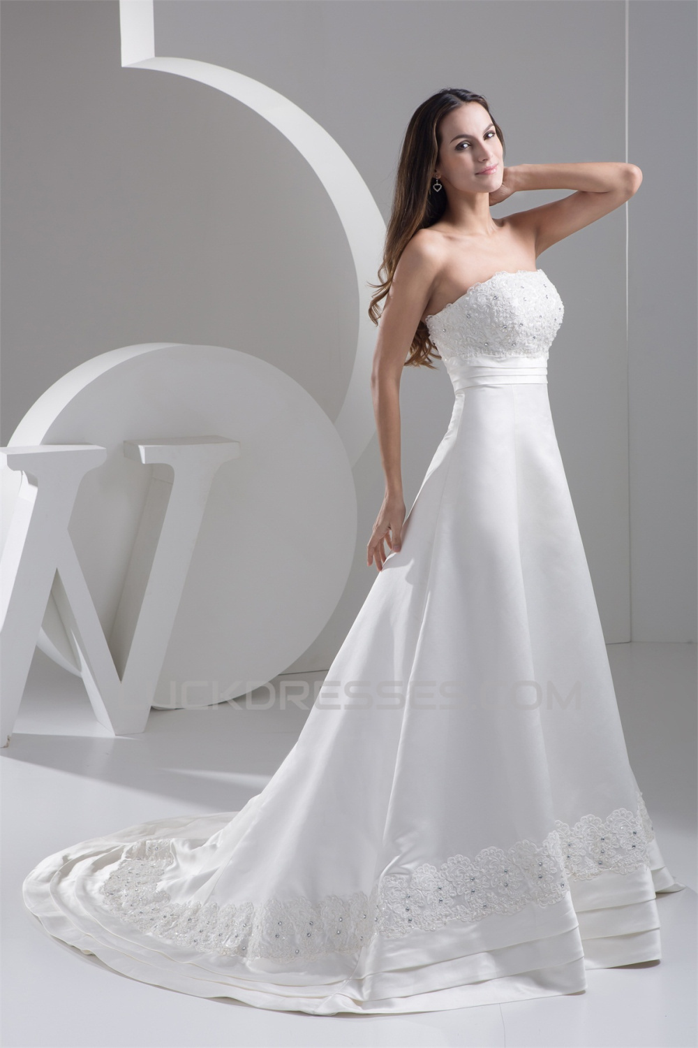 -50% A-Line Strapless Beaded Lace Wedding Dresses 2030894