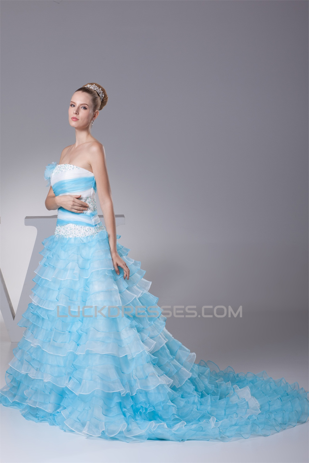A-Line Strapless Beaded Lace Wedding Dresses with Color 2030295