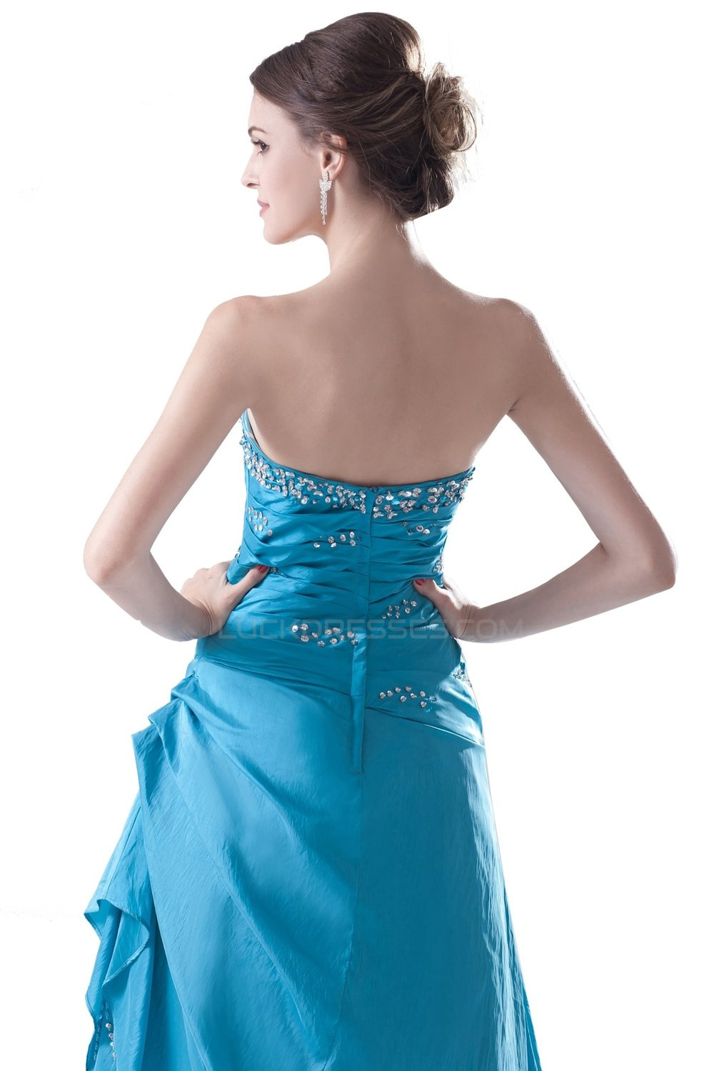 A-Line Strapless Beaded Long Blue Prom Evening Formal Party Dresses ED010492