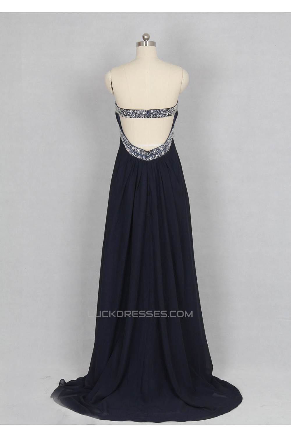 A-Line Strapless Beaded Long Chiffon Prom Evening Formal Dresses ED011141