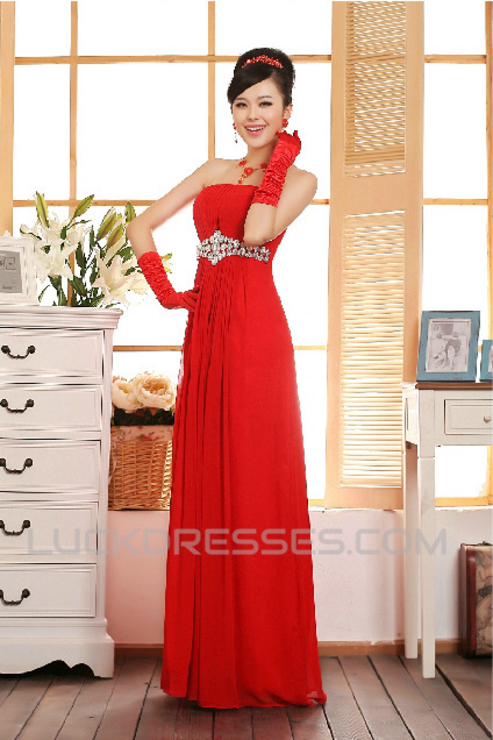A-Line Strapless Beaded Long Chiffon Prom Evening Formal Dresses ED011218
