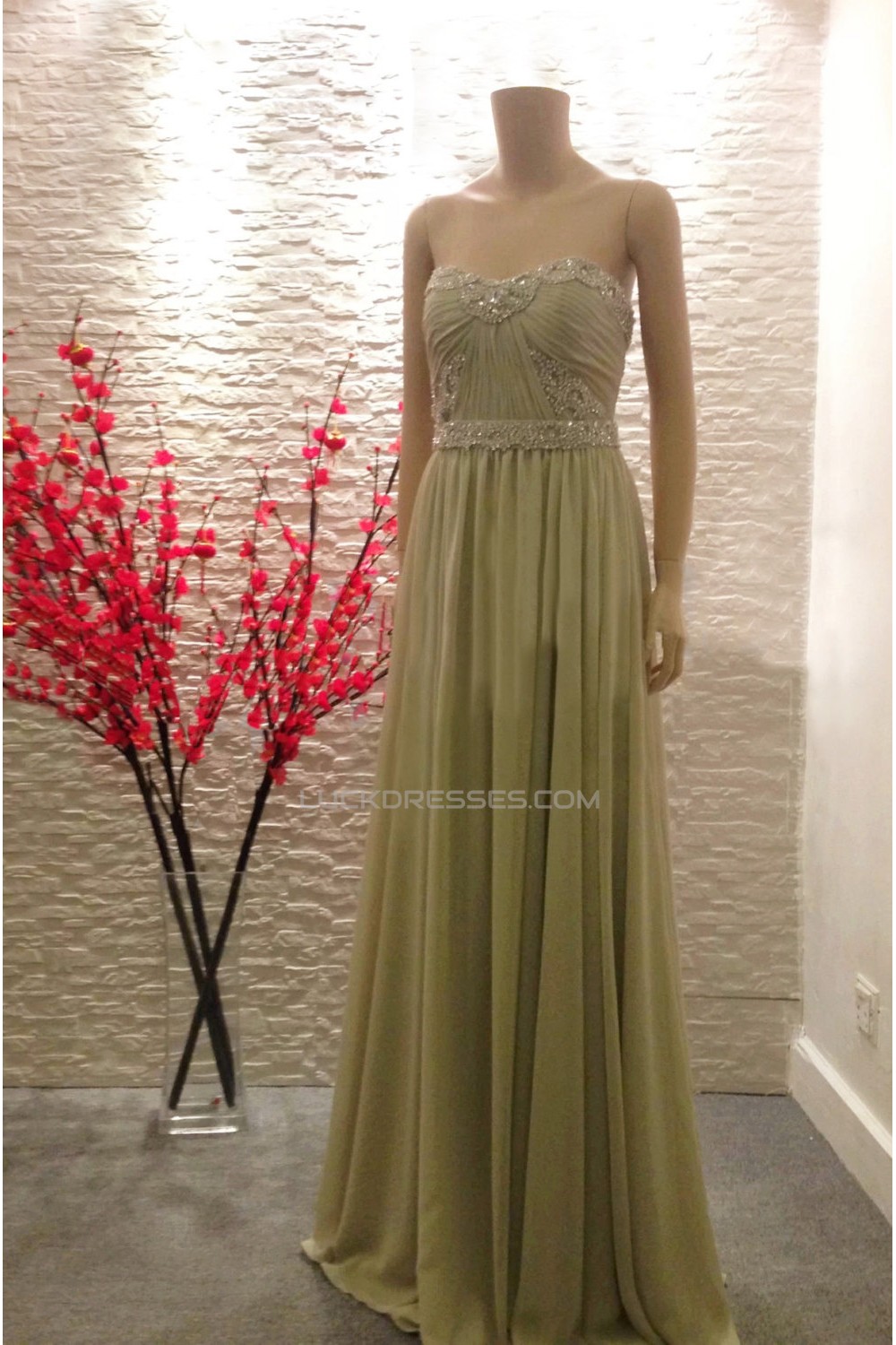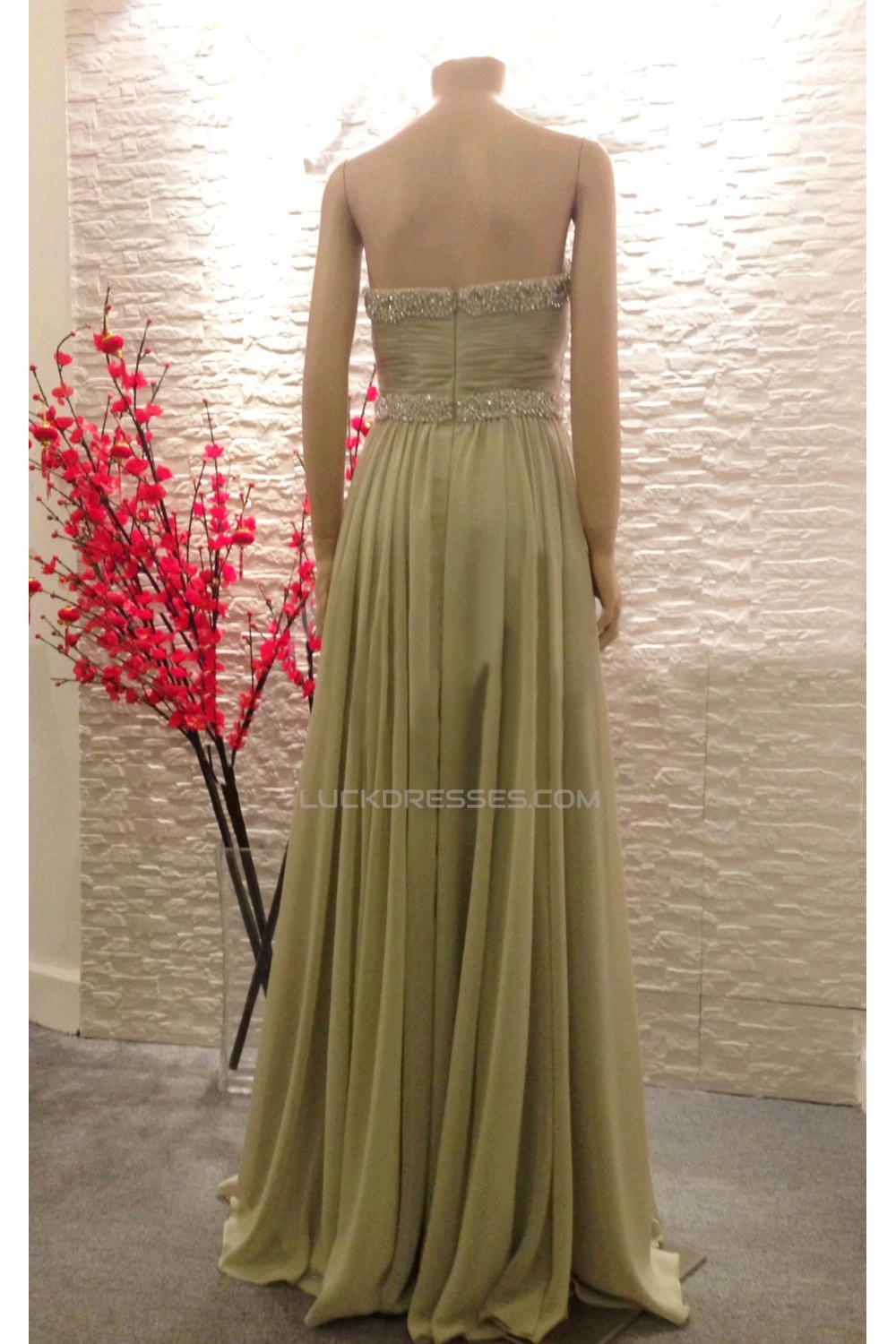 A-Line Strapless Beaded Long Chiffon Prom Evening Formal Dresses ED011464