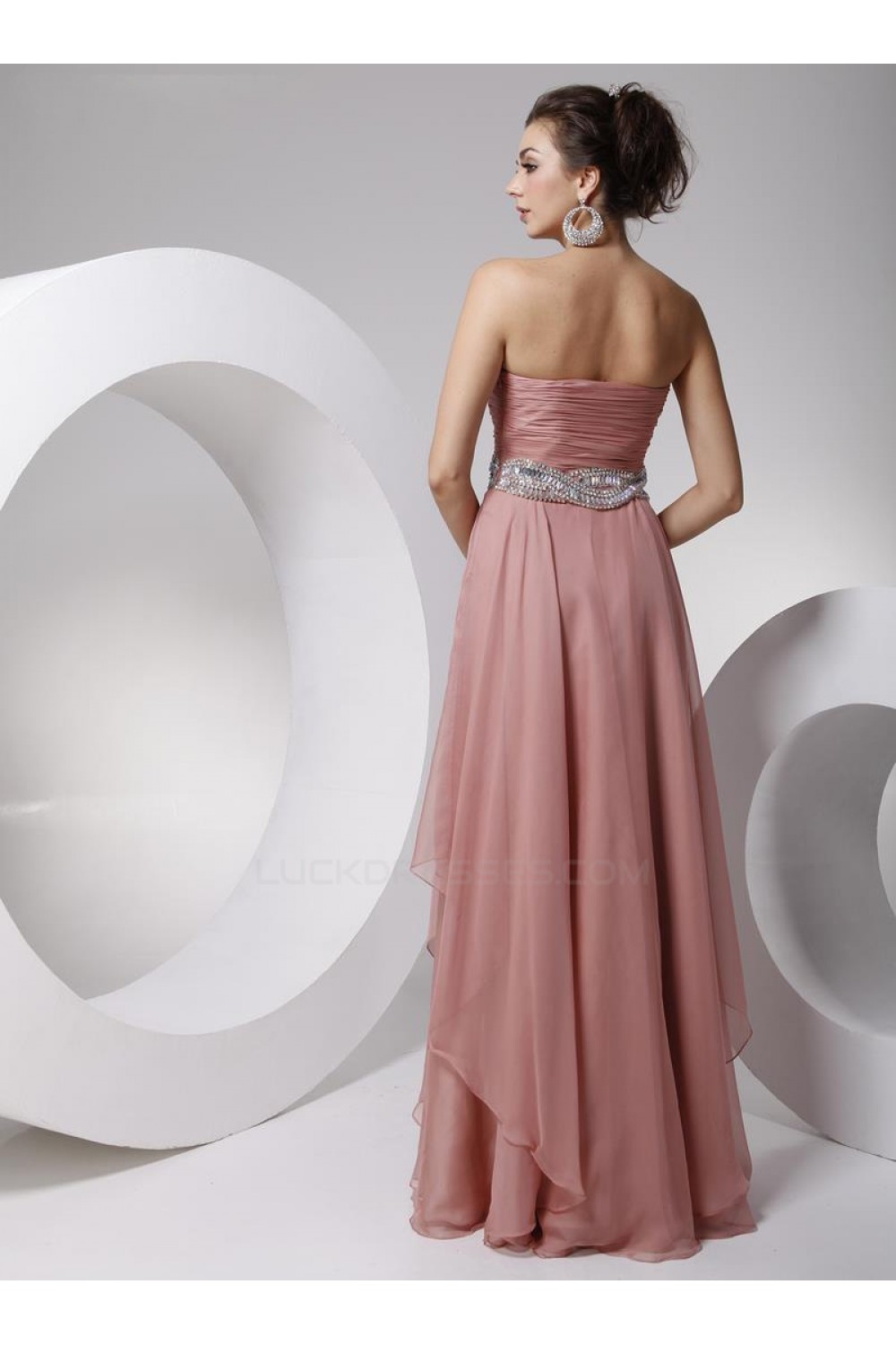 A-Line Strapless Beaded Long Chiffon Prom Evening Formal Party Dresses ED010699