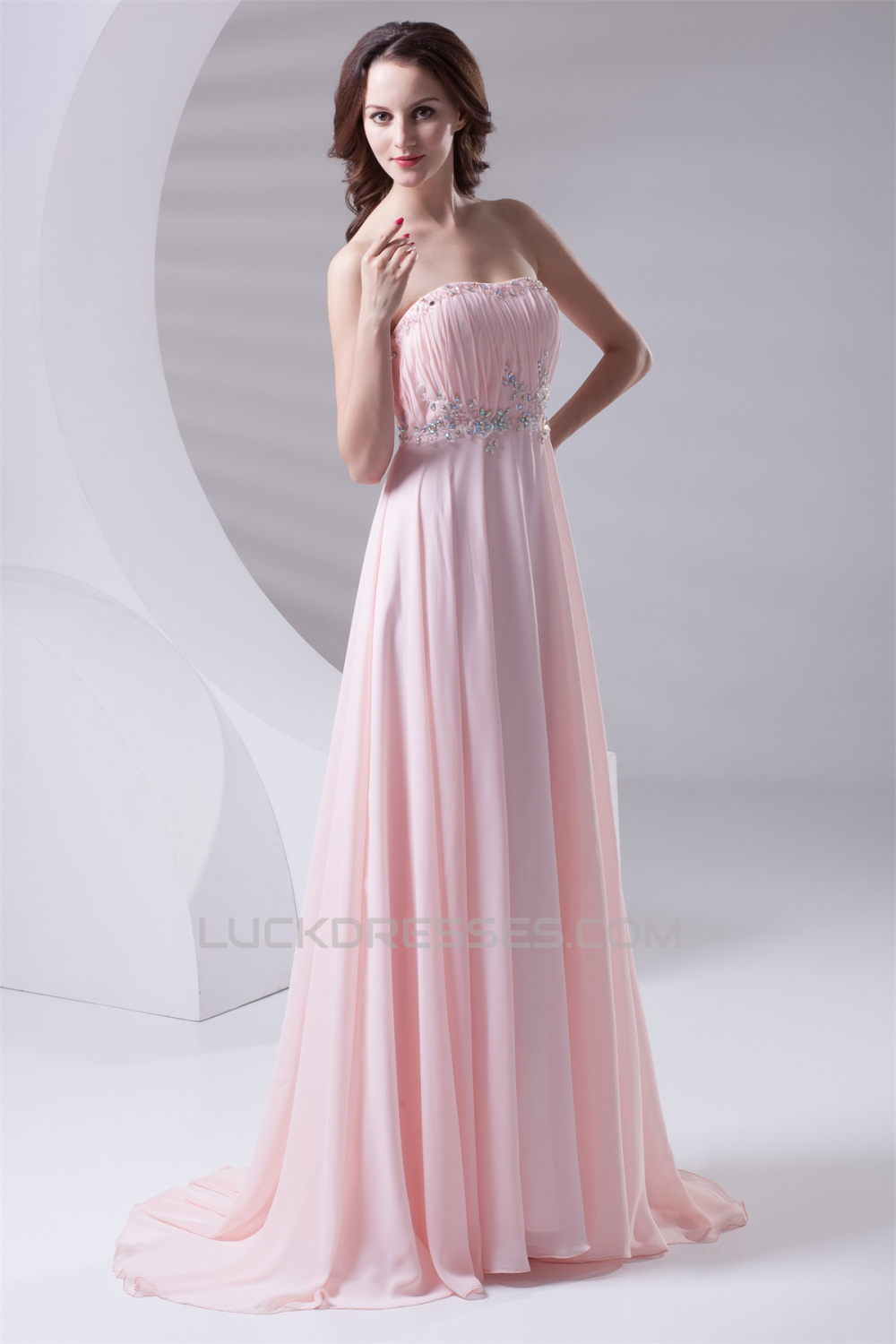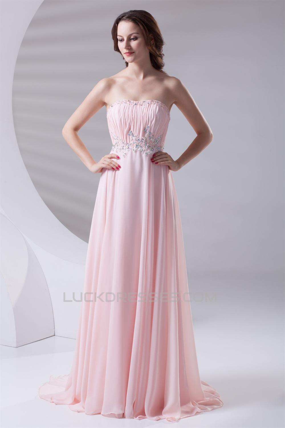 -60% A-Line Strapless Beaded Long Pink Prom Evening Formal Bridesmaid Dresses 02020613