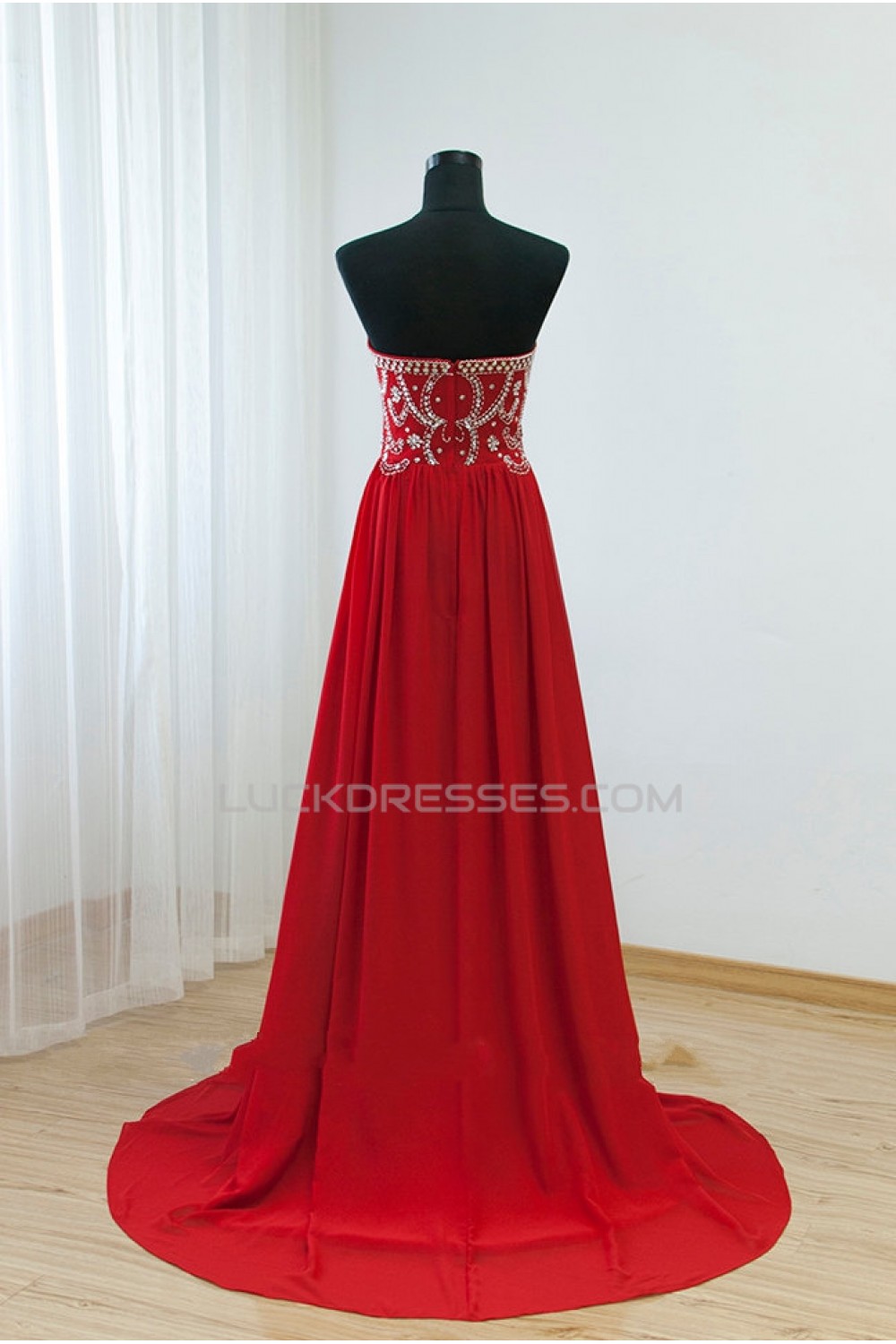 A-Line Strapless Beaded Long Red Chiffon Prom Evening Formal Dresses ED011532