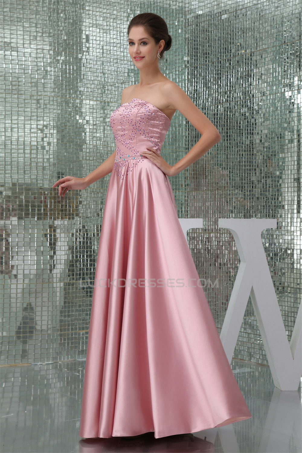 A-Line Strapless Beading Floor-Length Mother of the Bride Dresses w2040091