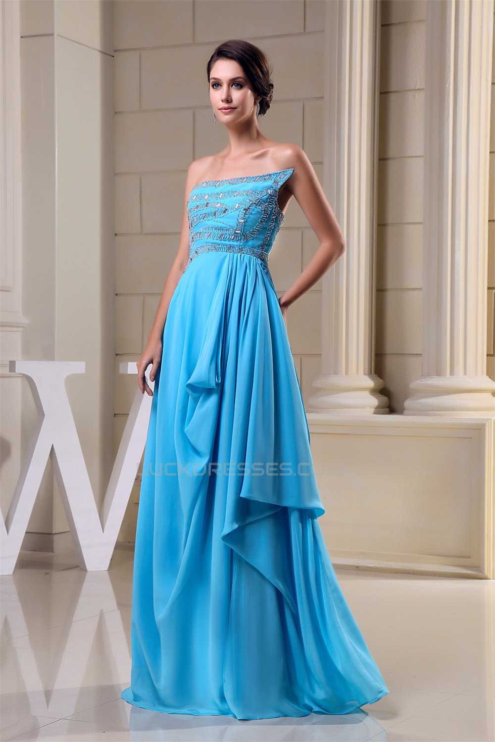 A-Line Strapless Beading Long Blue Floor-Length Prom Evening Formal Dresses 02020265
