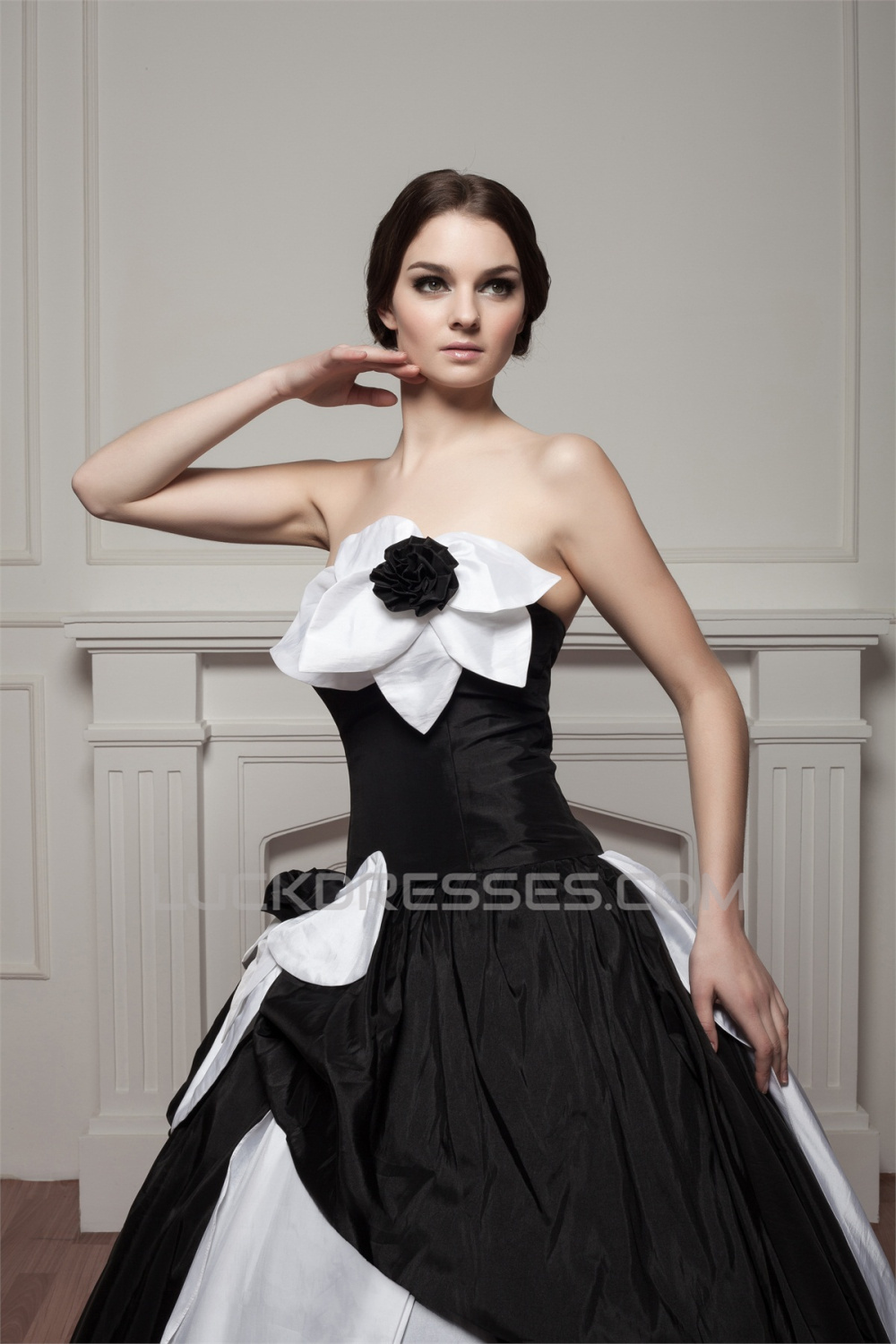 -50% A-Line Strapless Brush Sweep Train Handmade Flowers Wedding Dresses 2030558