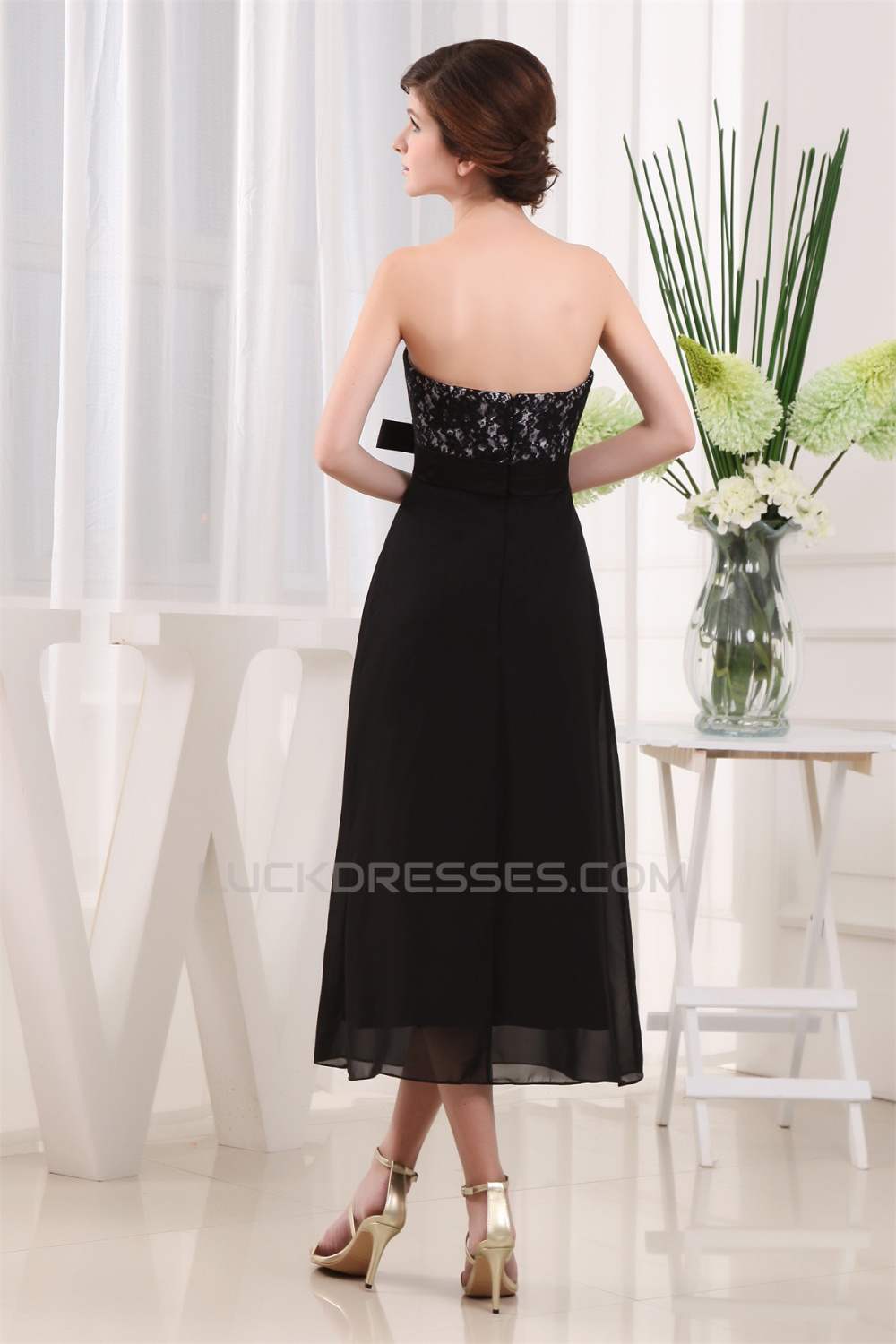 A-Line Strapless Chiffon Lace Black Prom/Formal Evening Bridesmaid Dresses 02020405