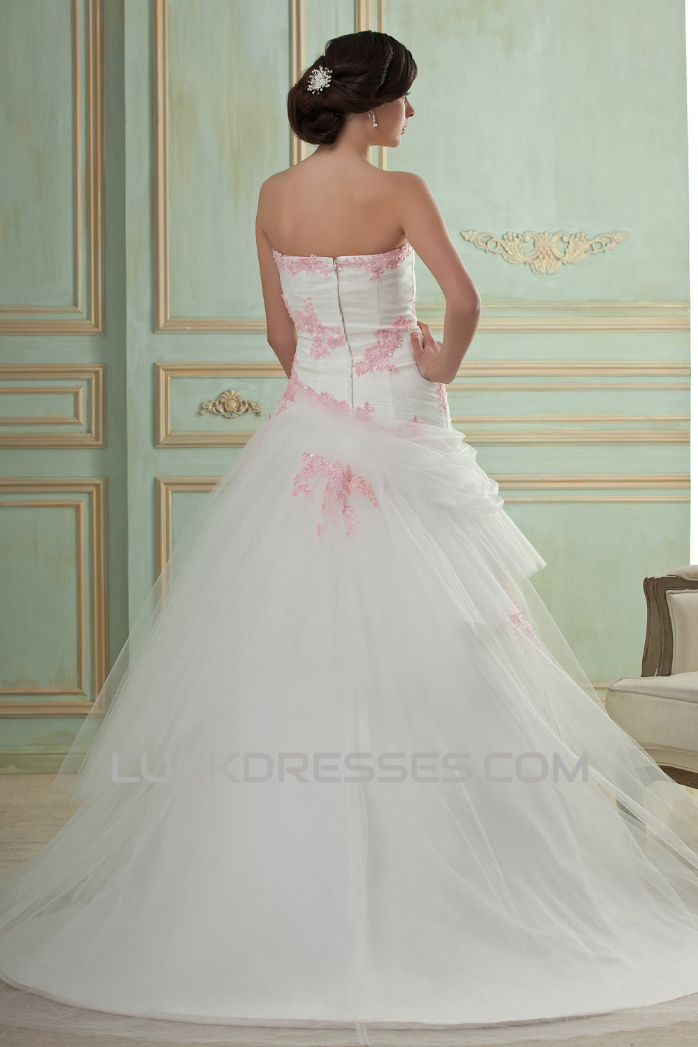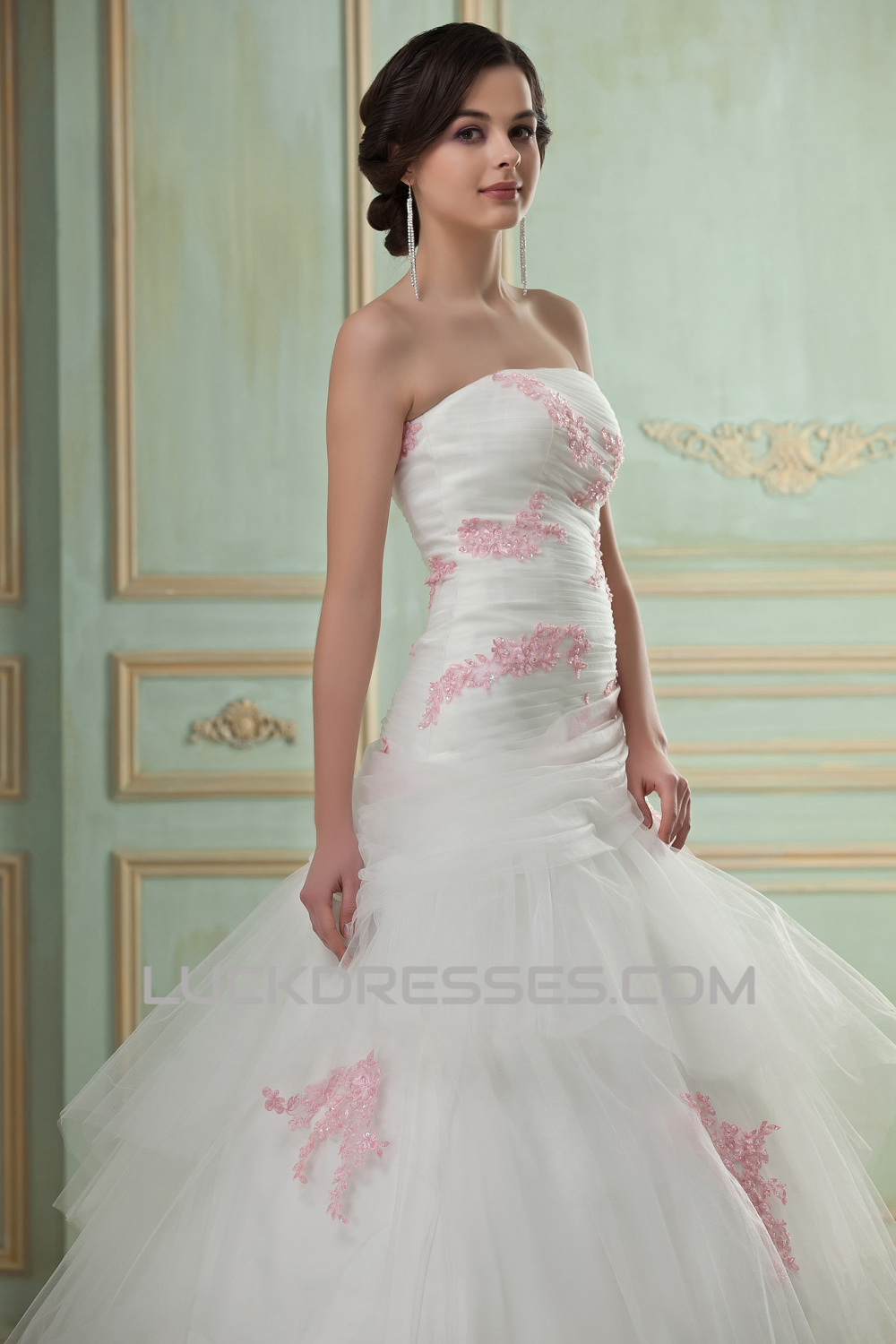 -50% A-Line Strapless Court Train Lace Tulle Wedding Dresses 2031441