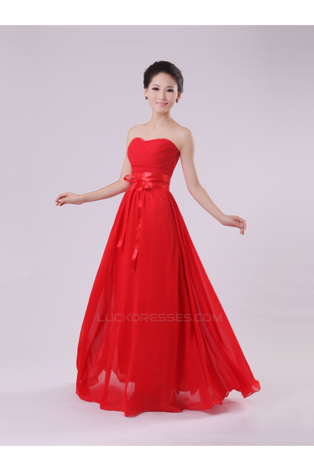 A-Line Strapless Long Red Chiffon Bridesmaid Dresses/Evening Dresses BD010572