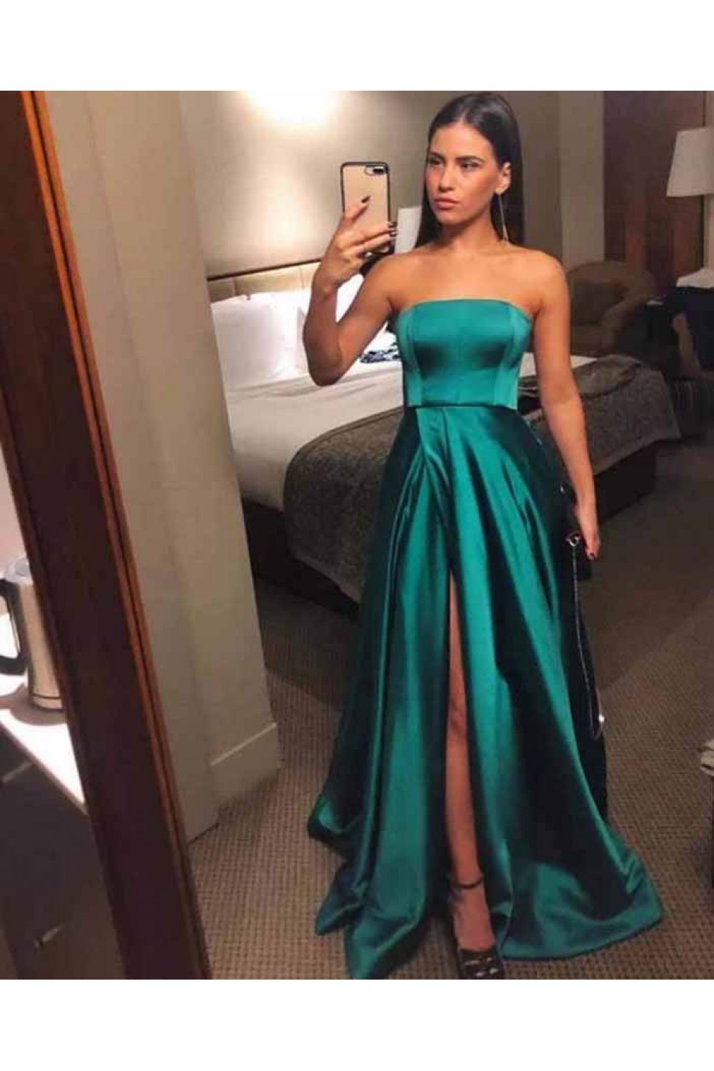 A-Line Strapless Long Satin Prom Dresses Formal Evening Gowns 6011117