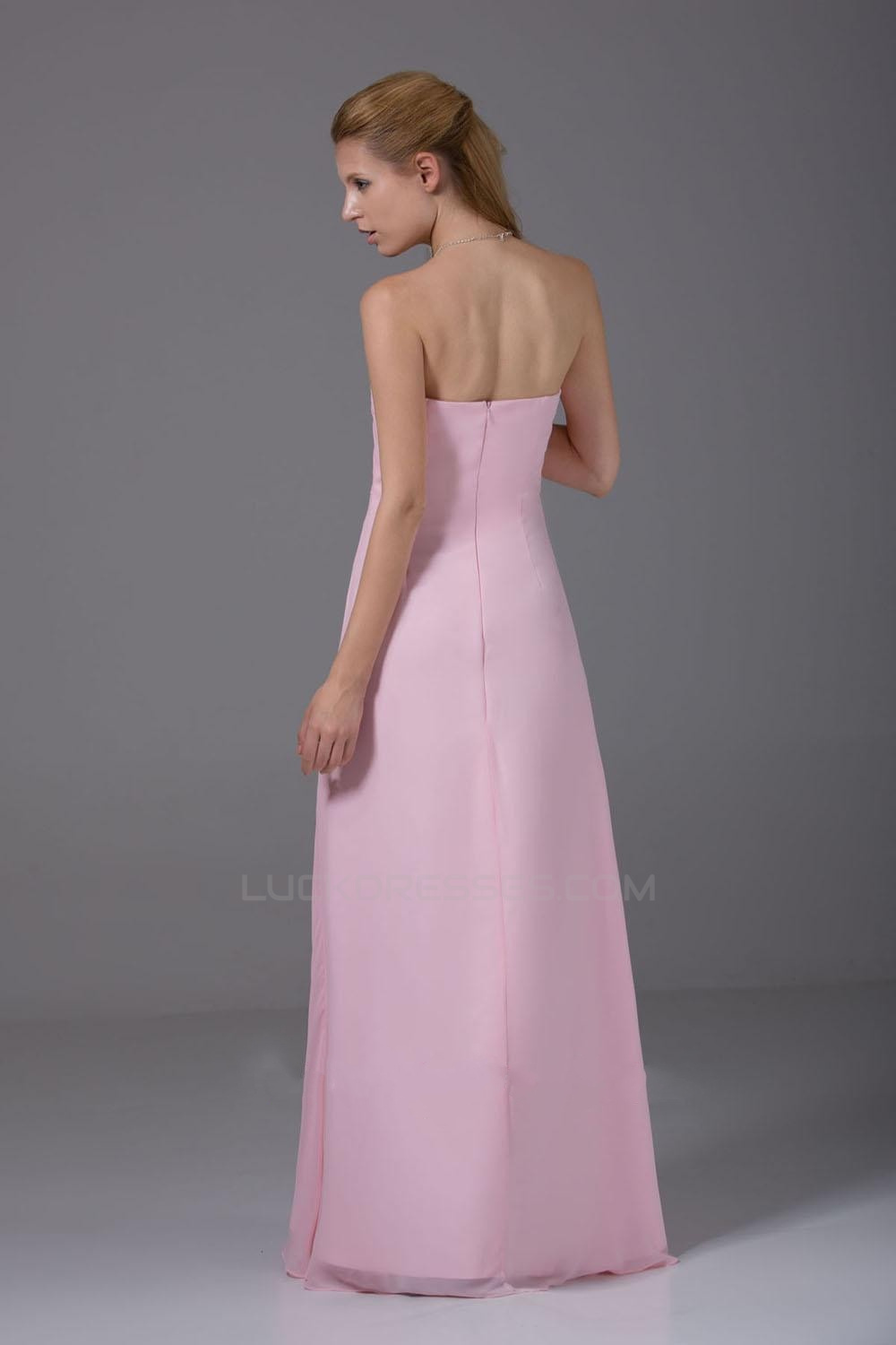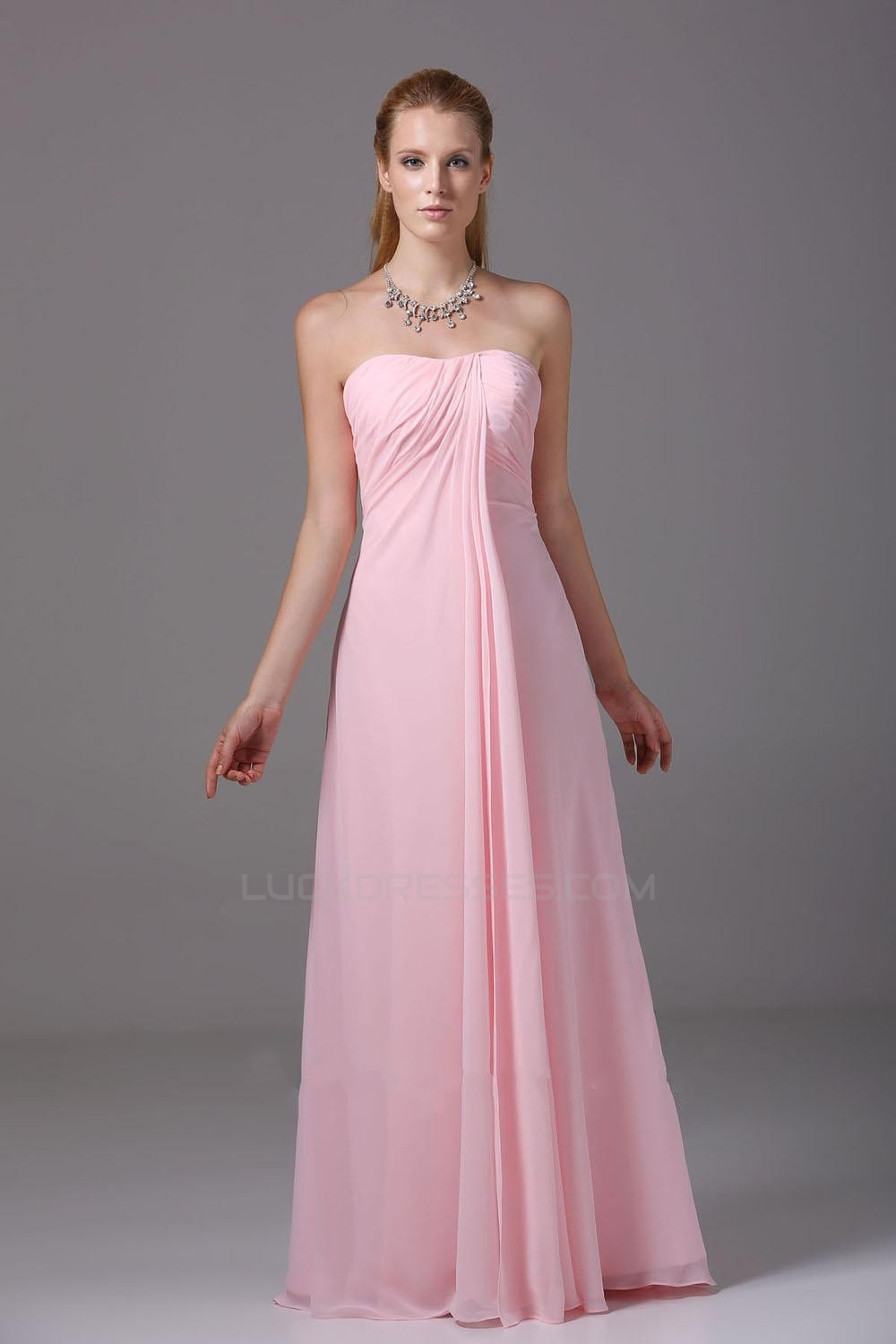 A-Line Strapless Pink Floor-Length Chiffon Bridesmaid Dresses/Wedding Party Dresses BD010443