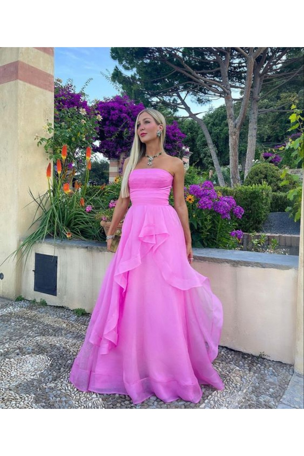 -60% A-Line Strapless Pink Long Prom Dresses 801206