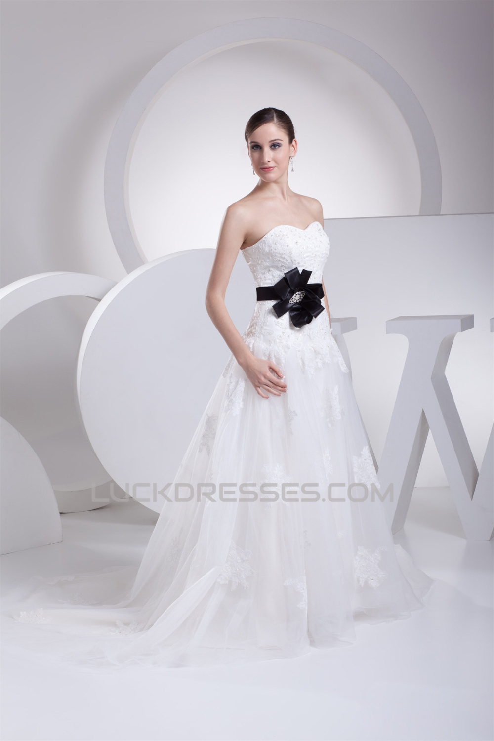 A-Line Strapless Satin Silk like Satin Lace Wedding Dresses 2030457