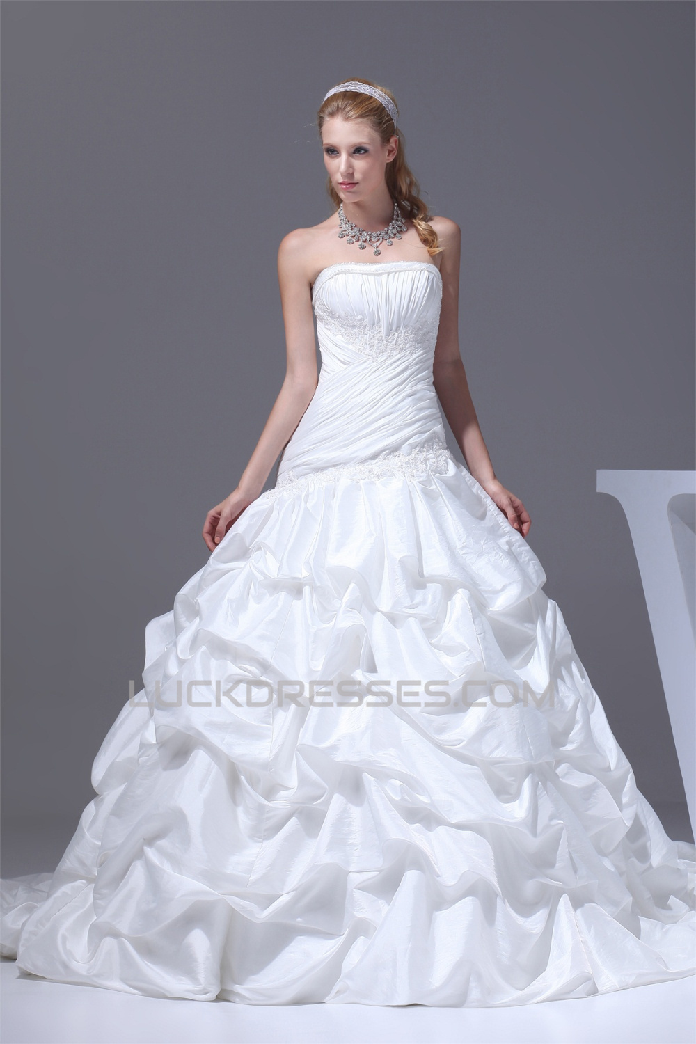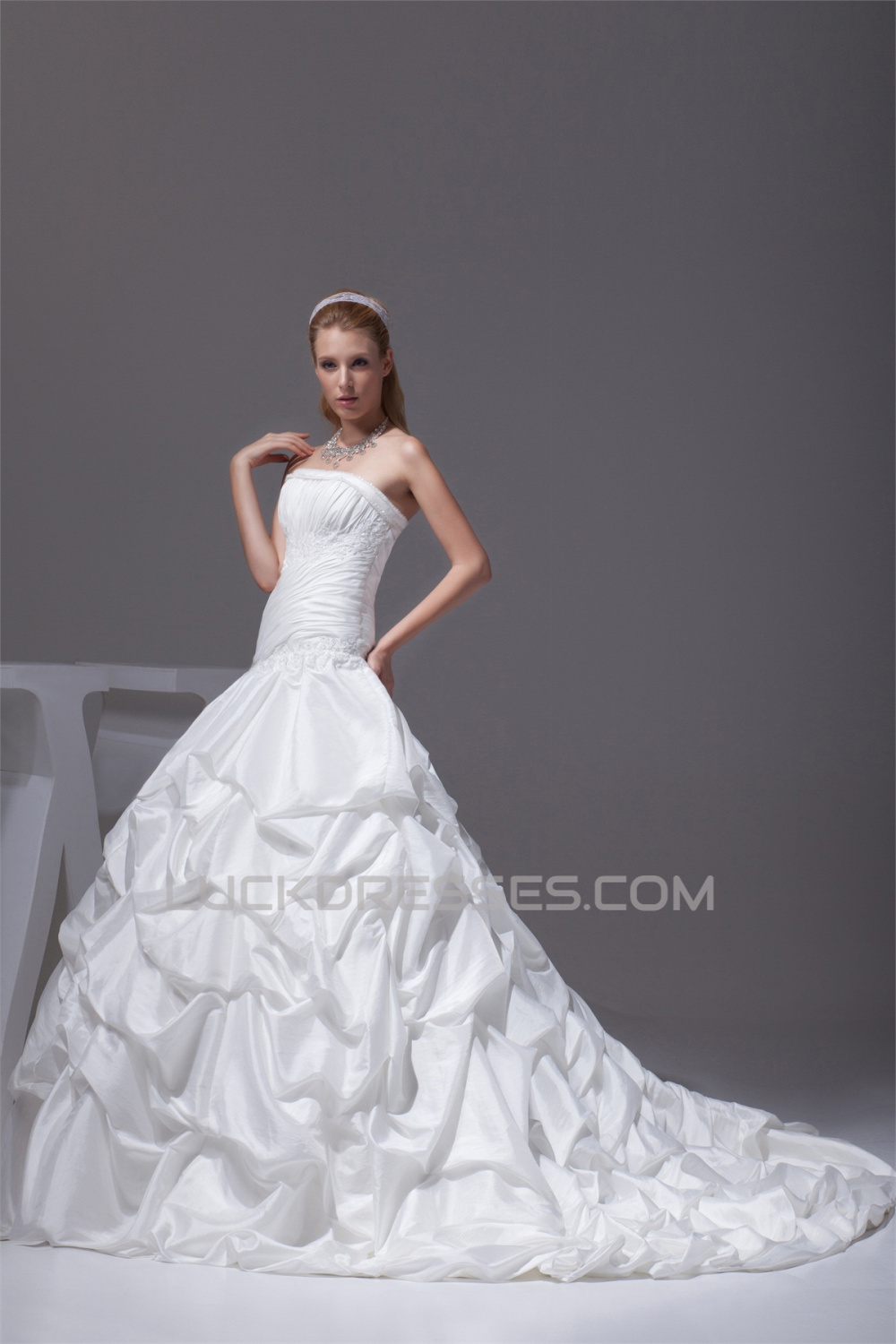A-Line Strapless Satin Taffeta Sweet Wedding Dresses 2030355