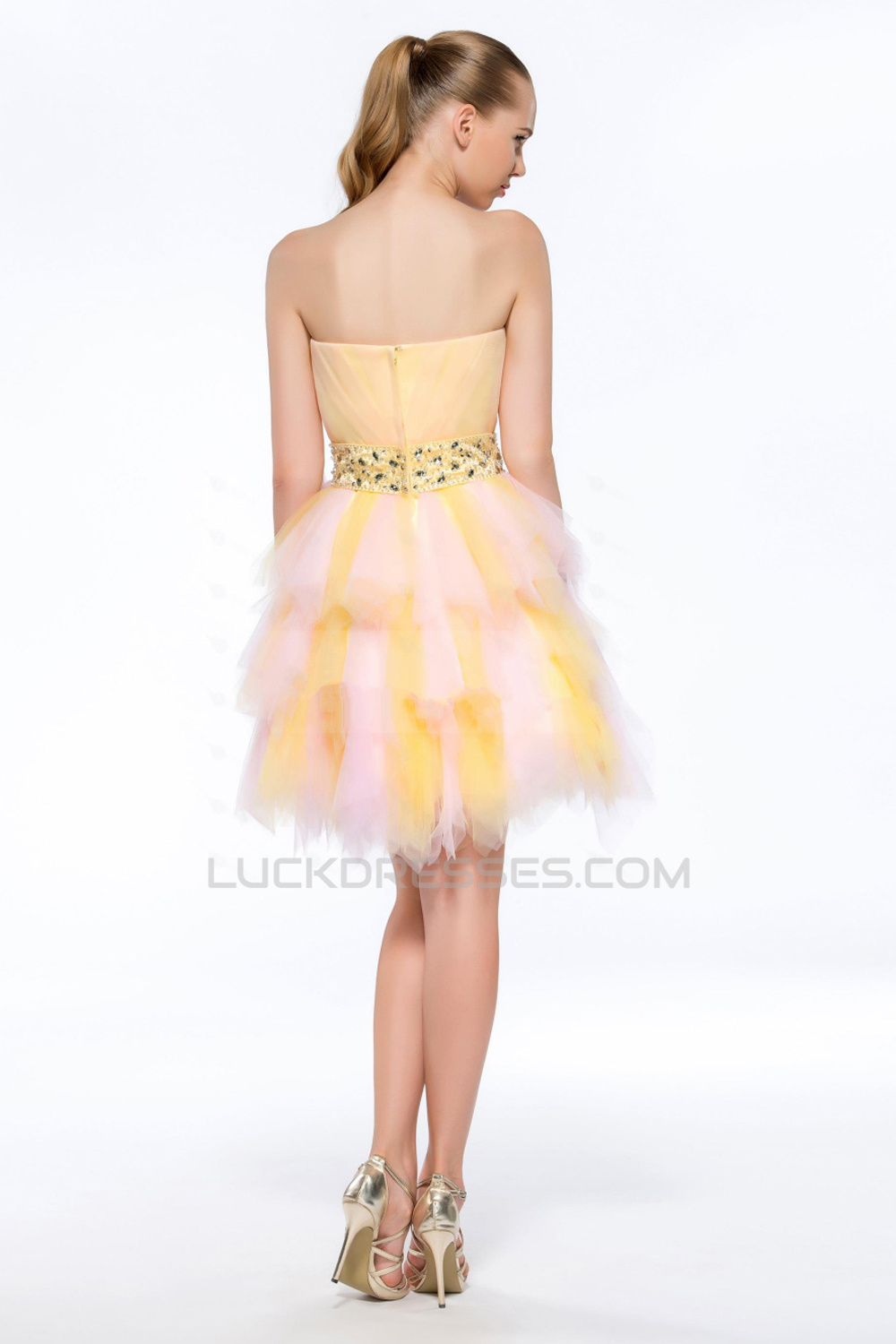 A-Line Strapless Short Yellow Beaded Prom Evening Cocktail Homecoming Party Dresses ED010626