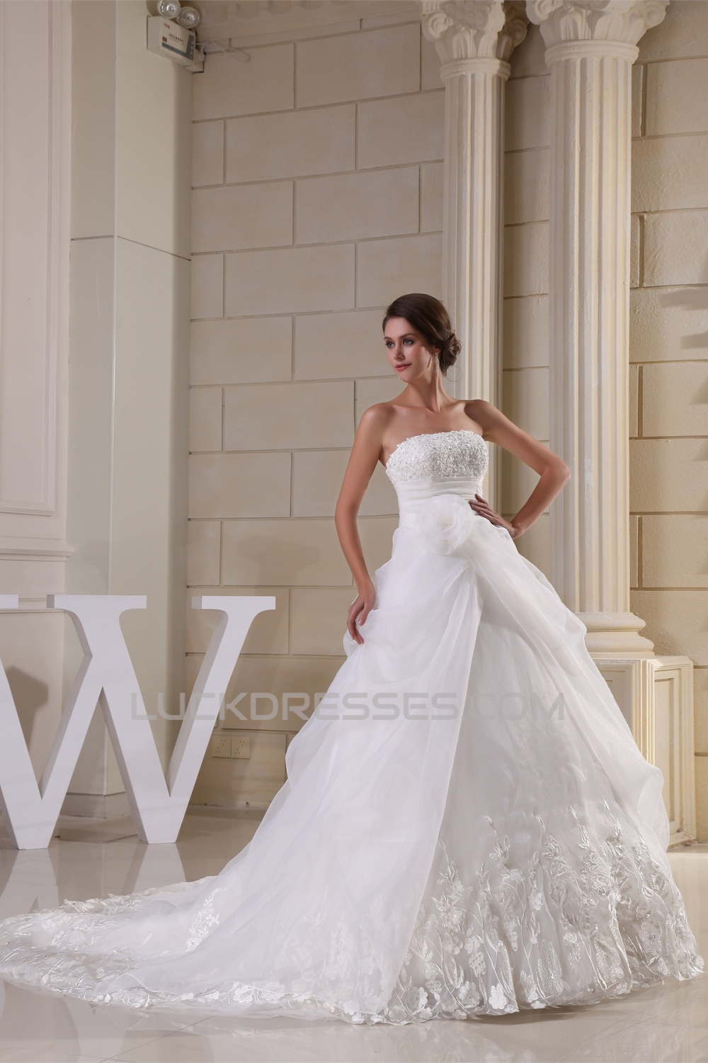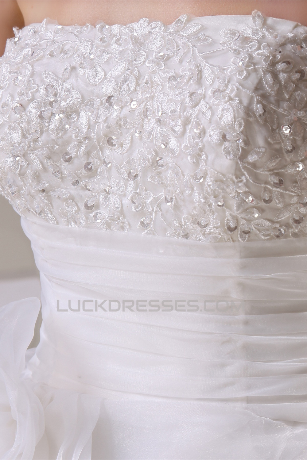 A-Line Strapless Sleeveless Satin Lace Organza Wedding Dresses 2030390