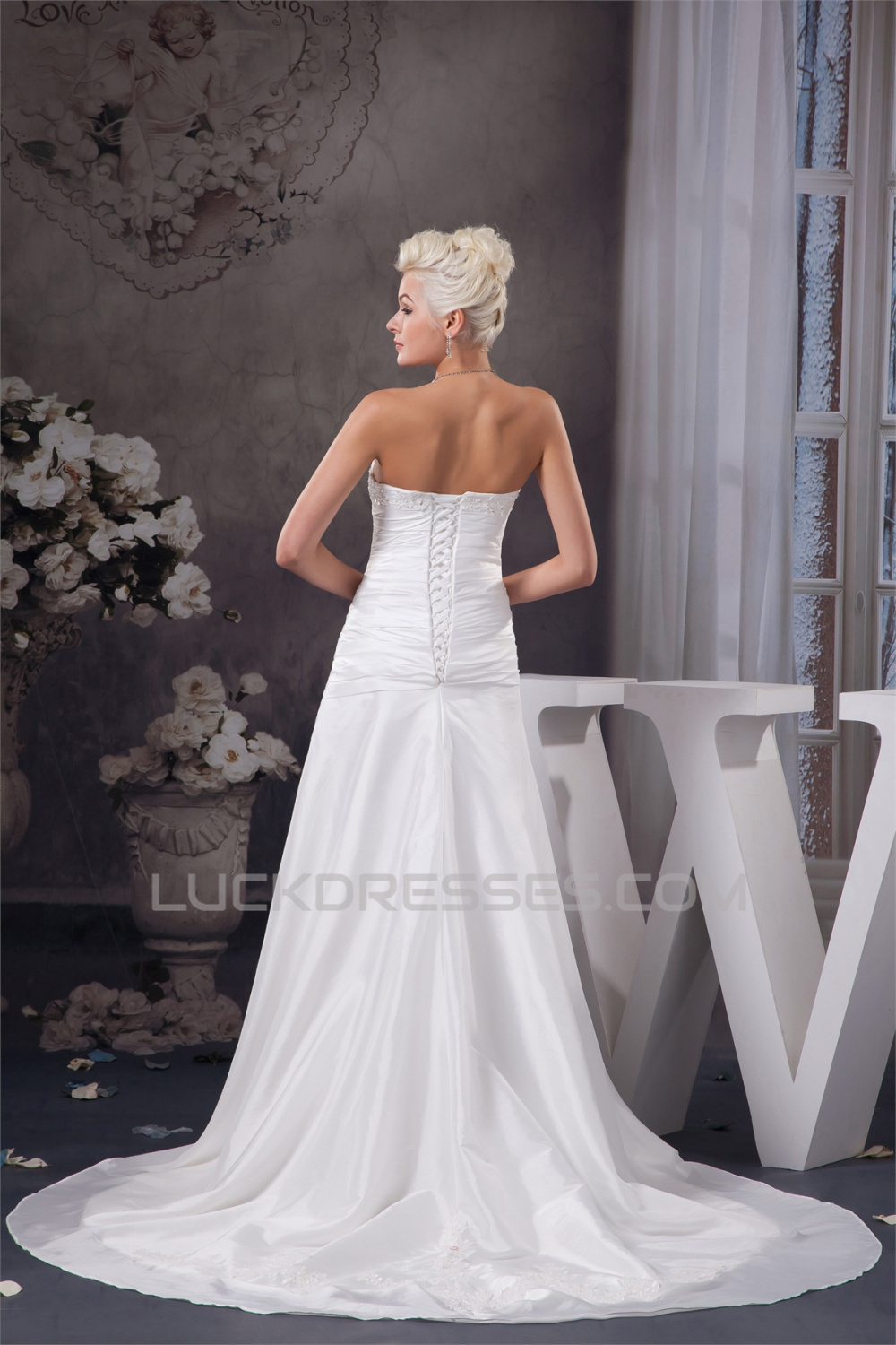 -50% A-Line Strapless Sleeveless Satin Taffeta Wedding Dresses 2030946
