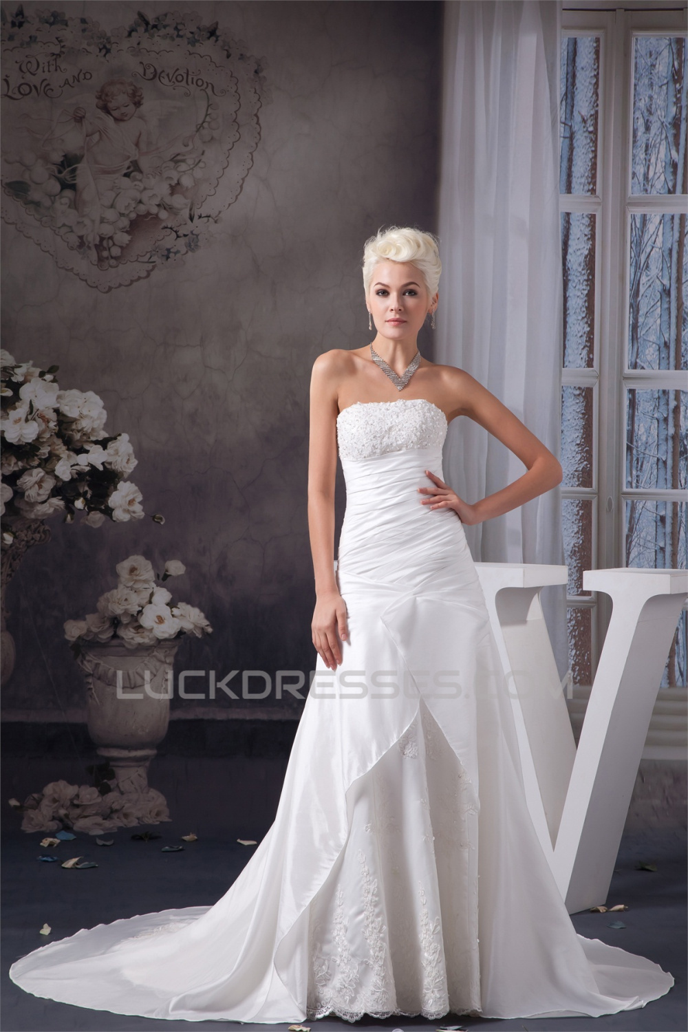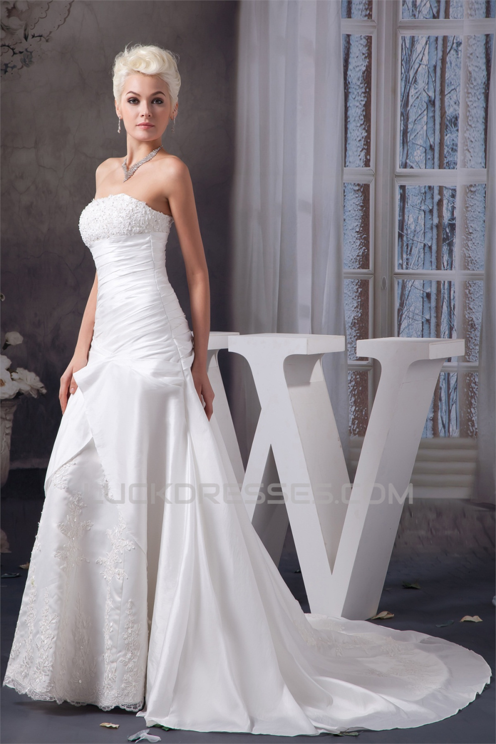 A-Line Strapless Sleeveless Satin Taffeta Wedding Dresses 2030946