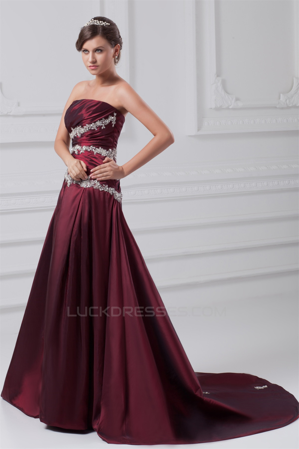 A-Line Strapless Sleeveless Sequins Taffeta Prom/Formal Evening Dresses 02020635