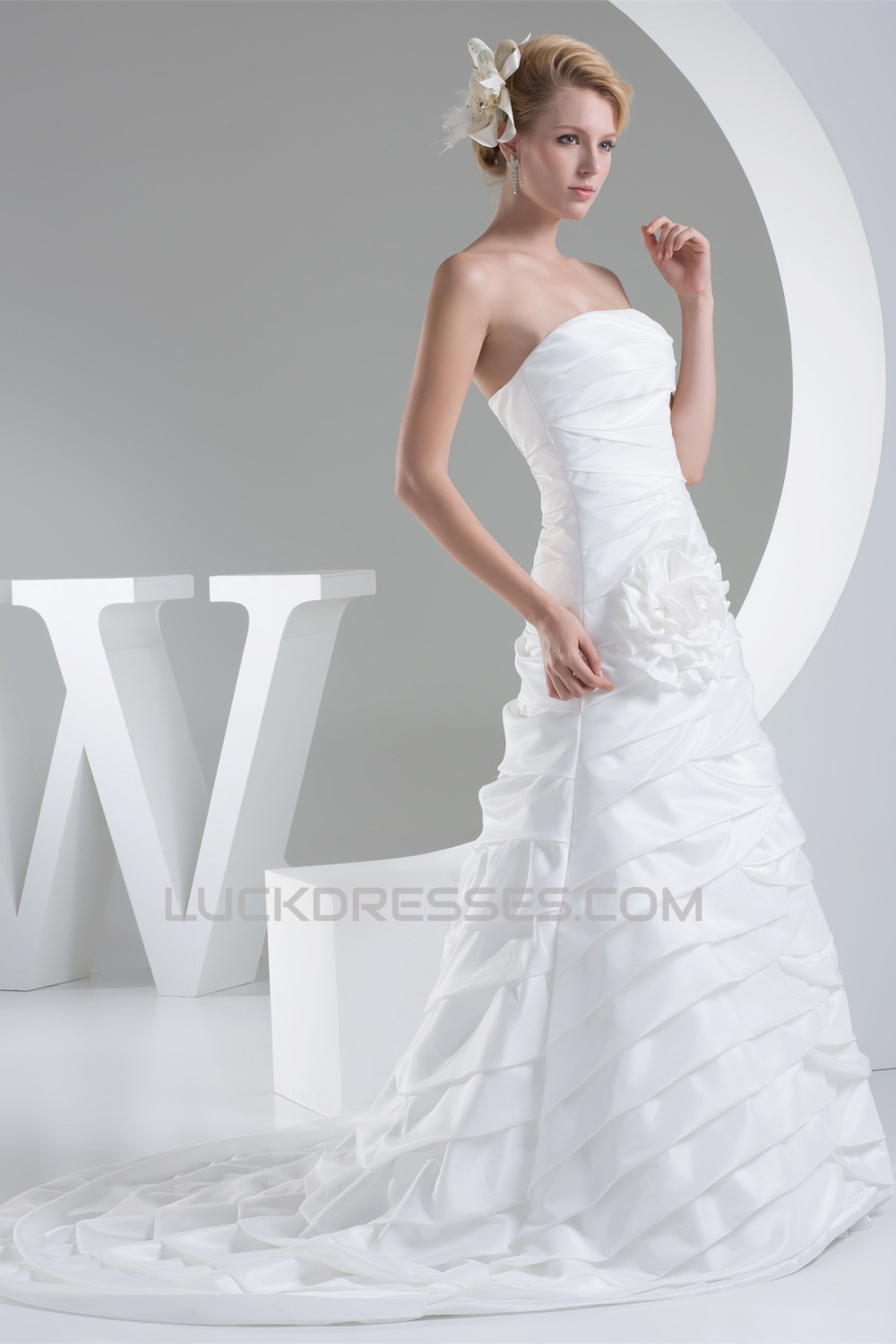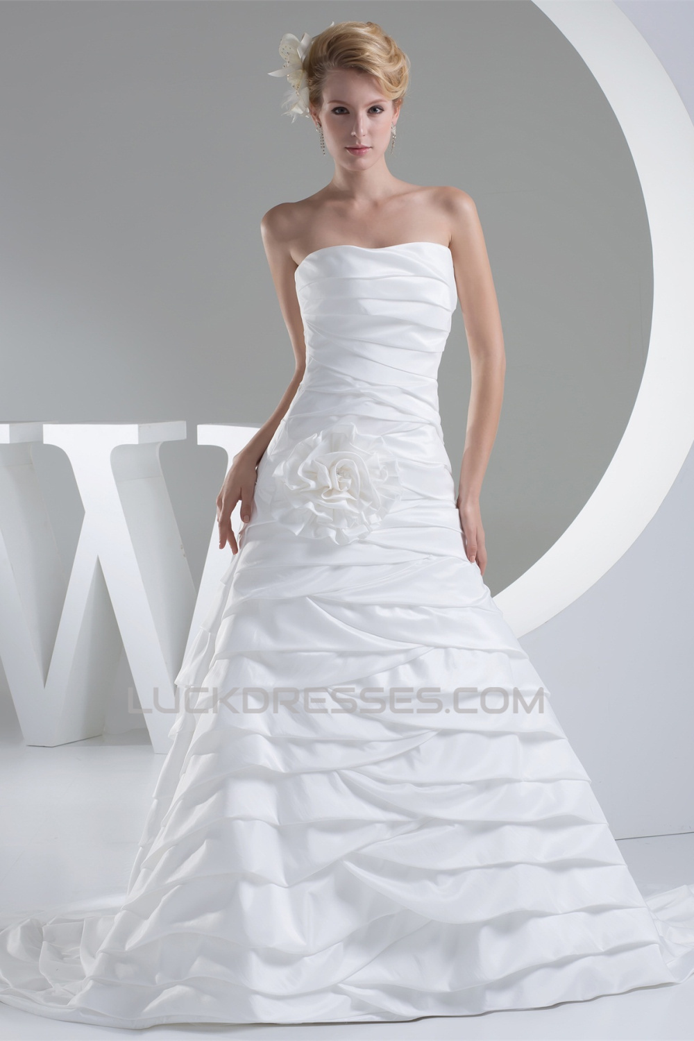-50% A-Line Strapless Taffeta Sleeveless Wedding Dresses 2030228