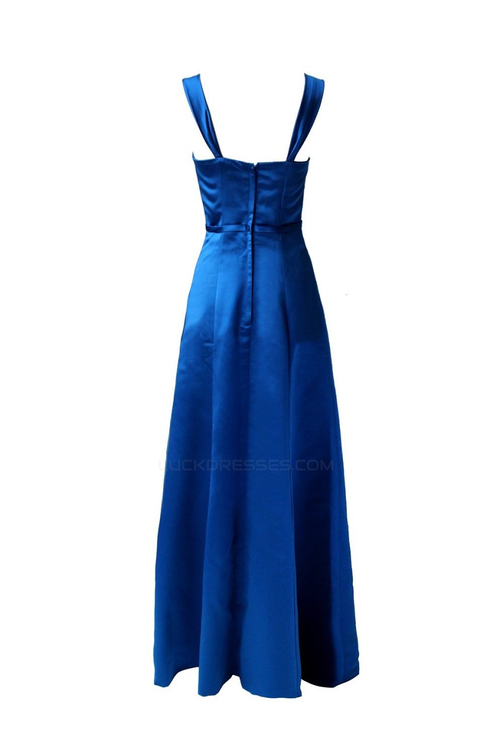 A-Line Straps Sleeveless Royal Blue Long Satin Bridesmaid Dresses/Wedding Party Dresses BD010008