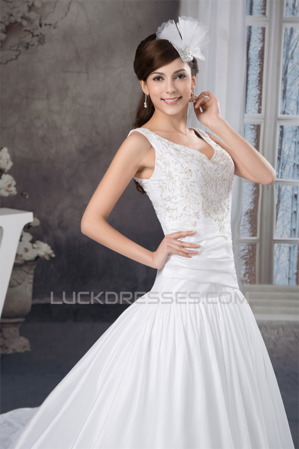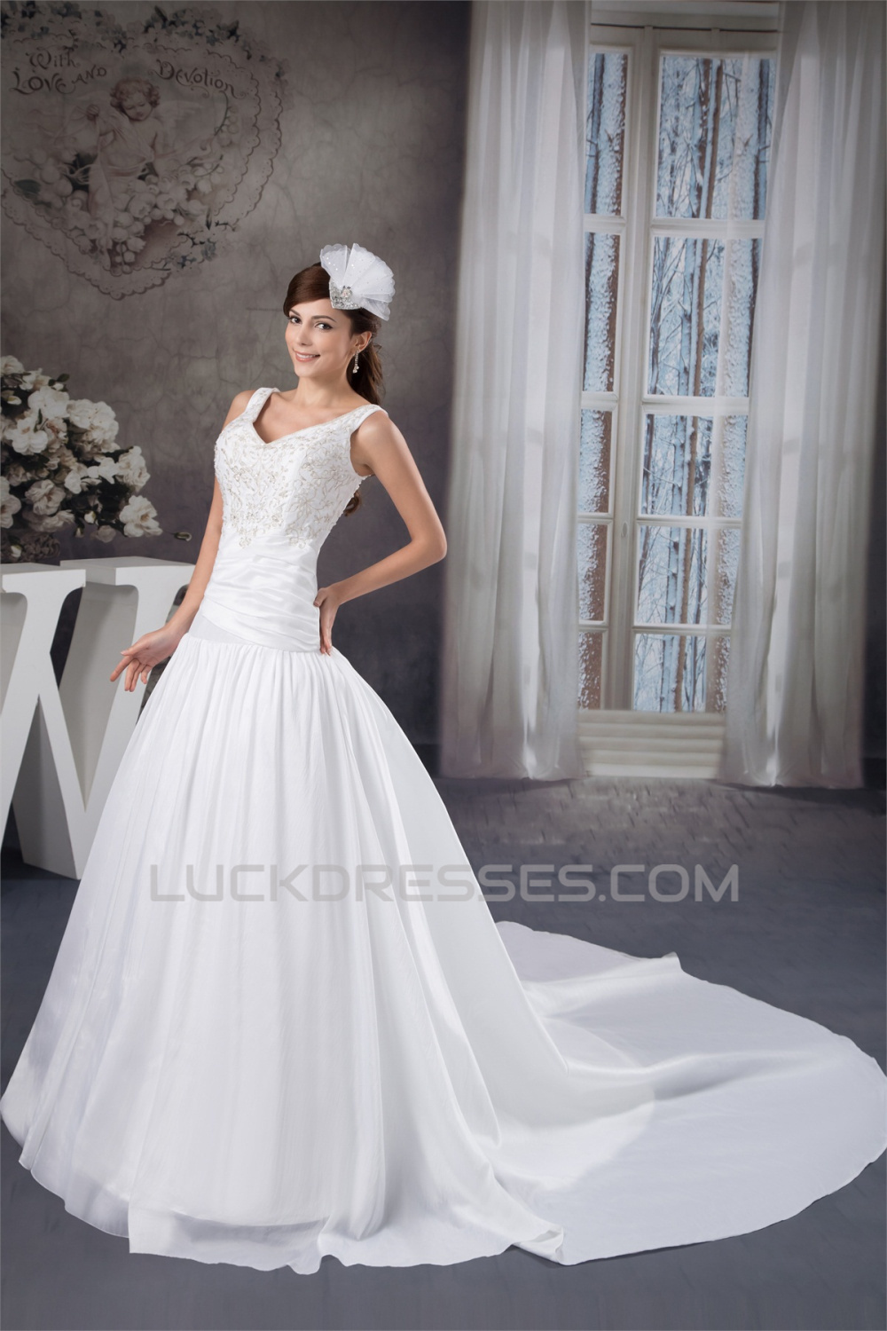 A-Line Straps Sleeveless Satin Taffeta Wedding Dresses 2030733